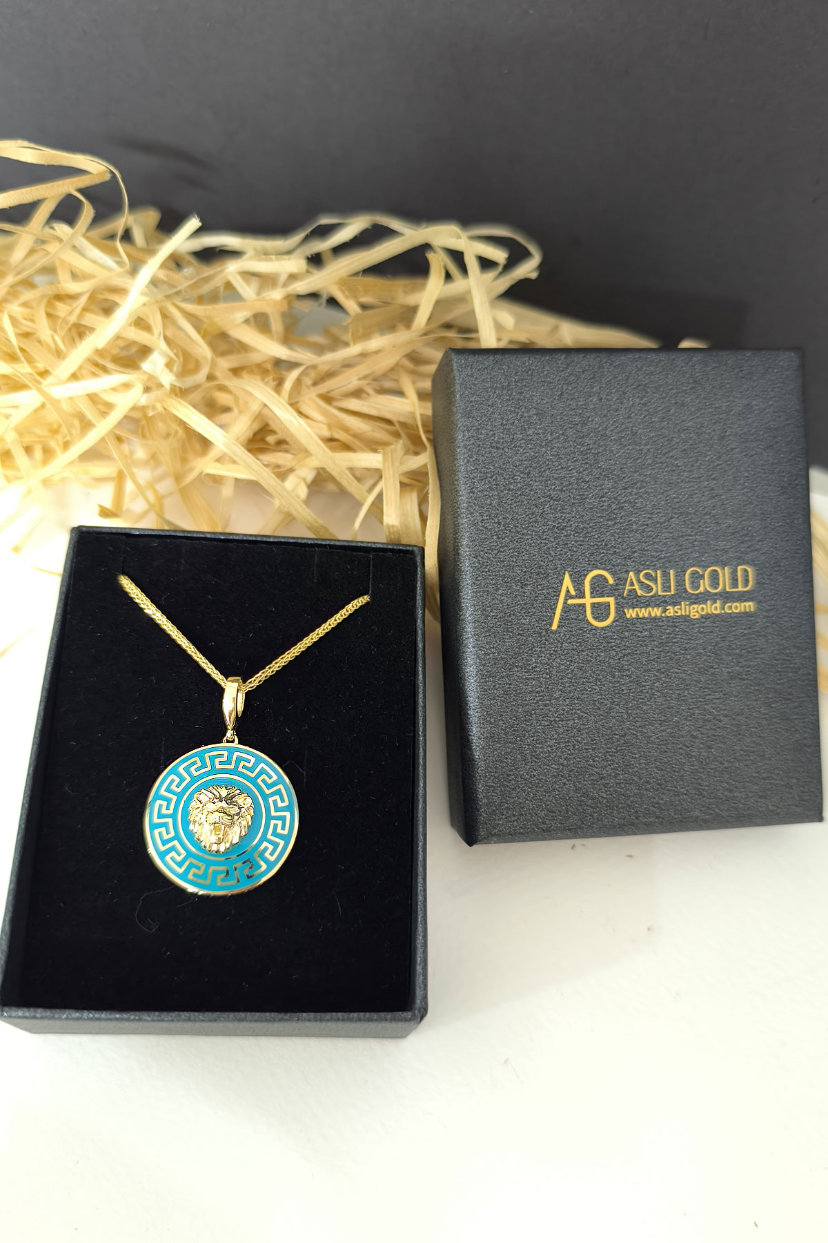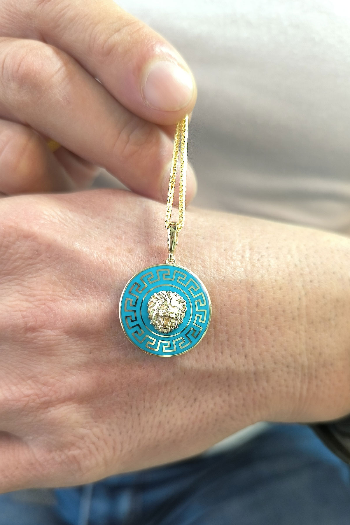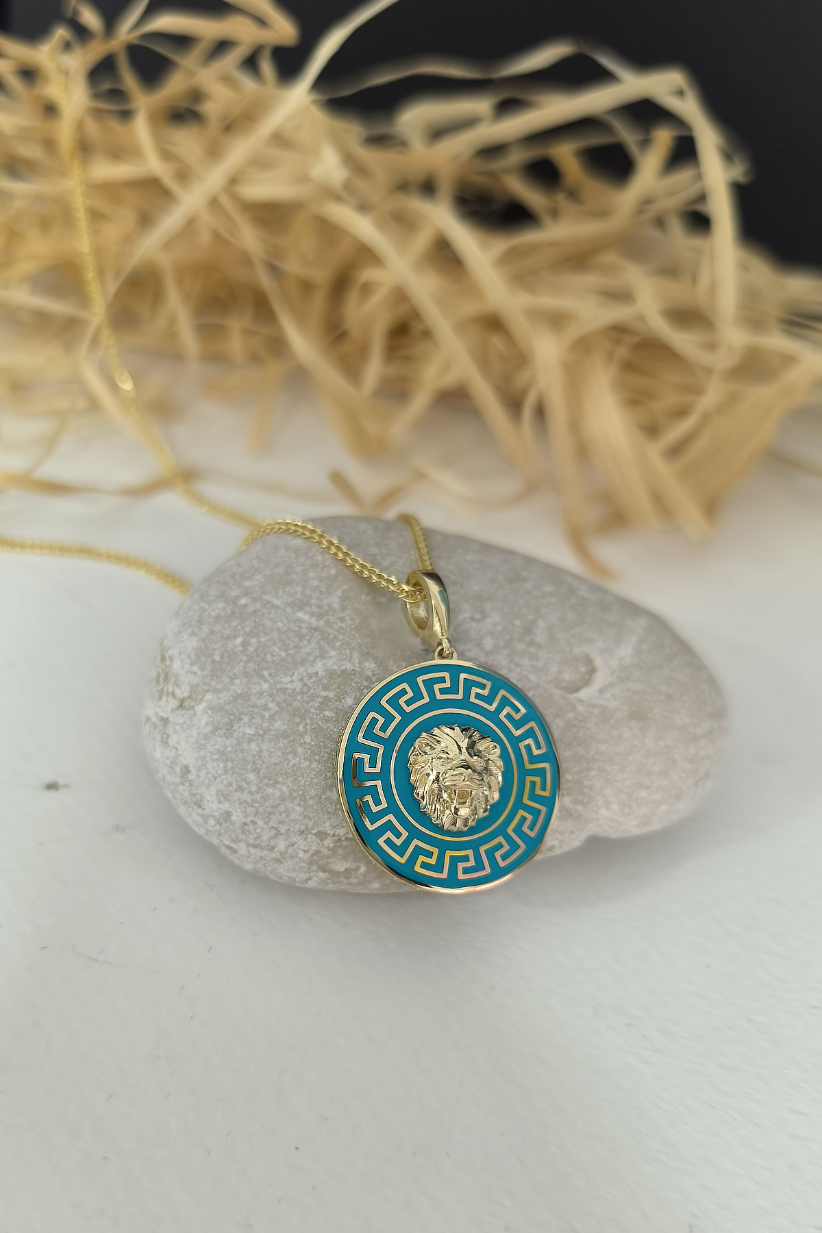 Modern Şehirli Tarz Spiga 55 Cm Zincir Seçimiyle Oldukça Şık Bir Modele Sahip Pana Kenar Detaylı Beyaz Mineli Taşsız 7.75 Gr. Ağırlığında 14 Ayar Altın Aslan Erkek Kolye.