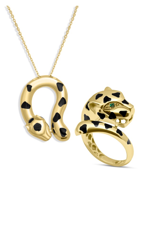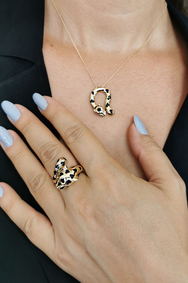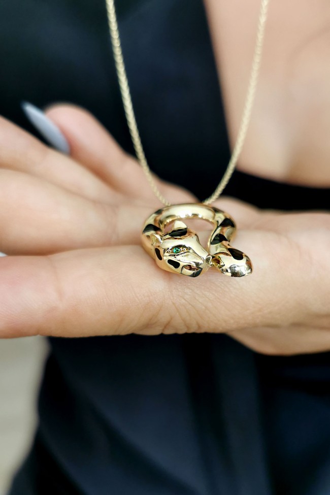 8.70 gram 14 ayar panter model siyah mine detaylarıyla oldukça farklı ve şık tasarım altın kolye yüzük takım.