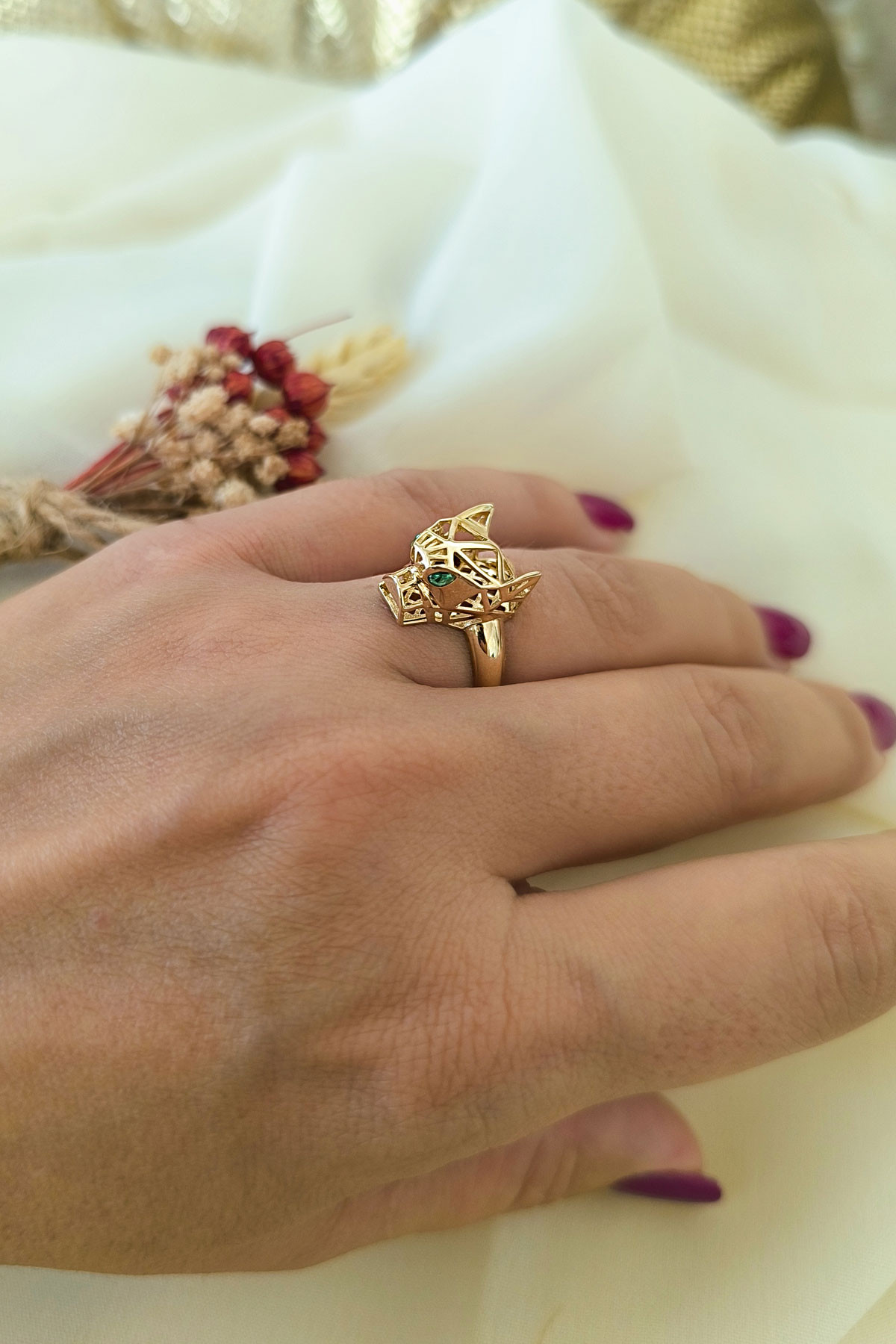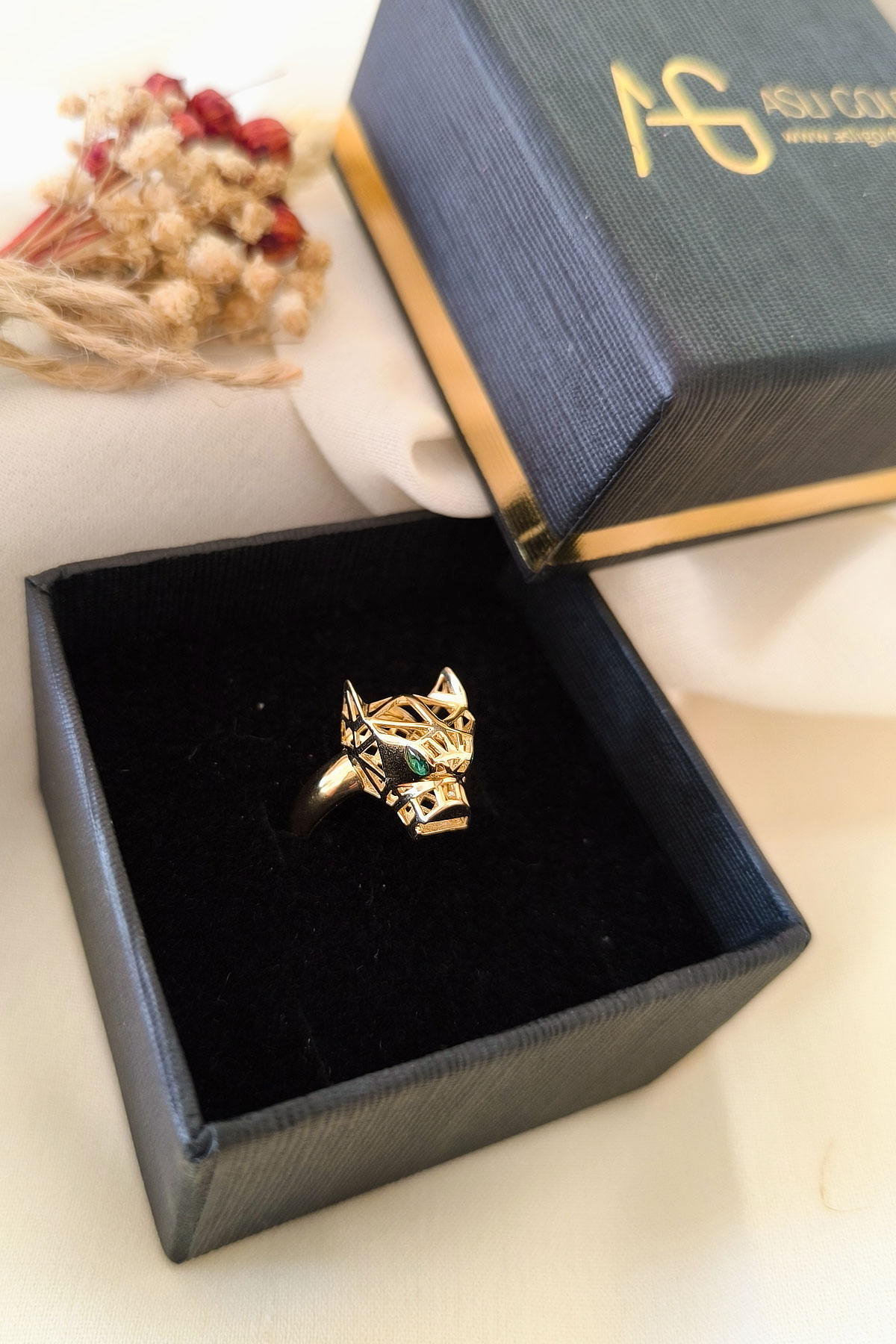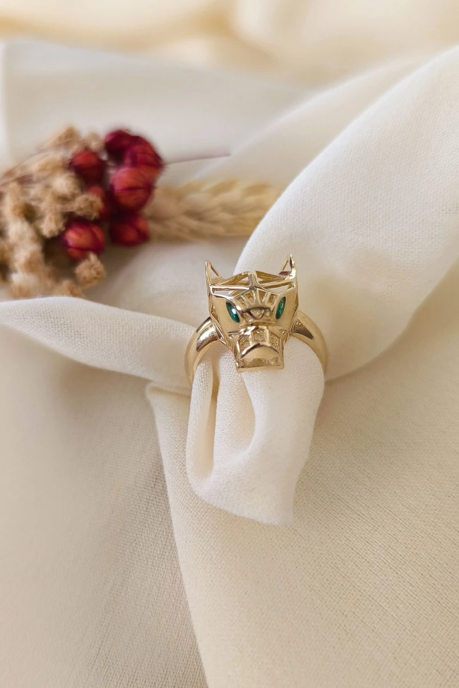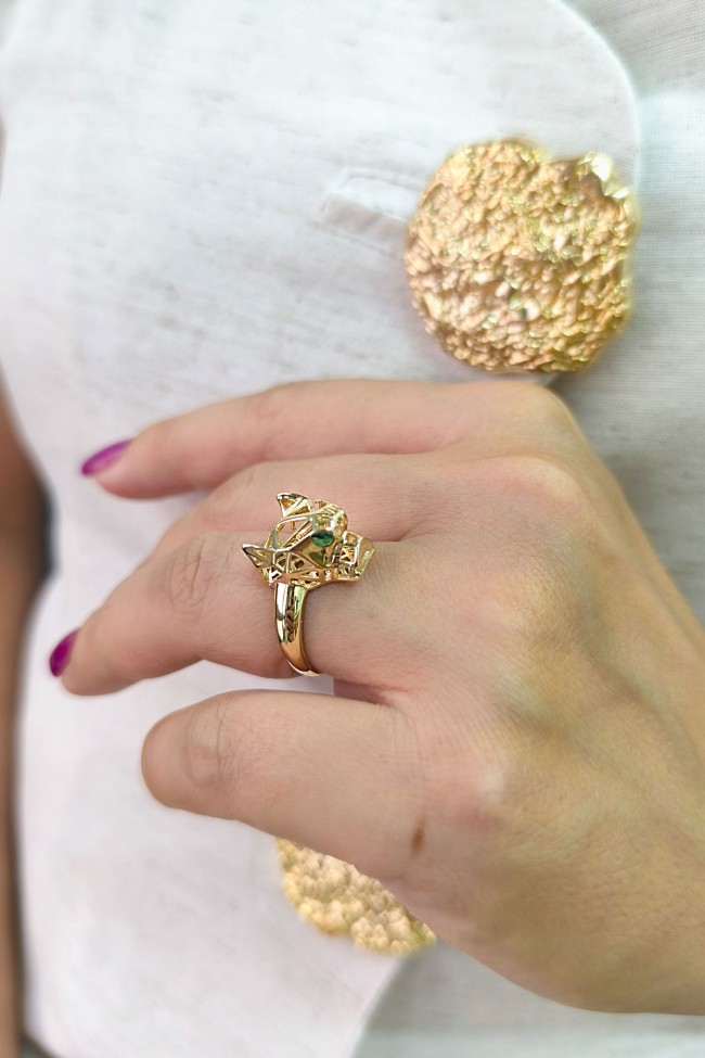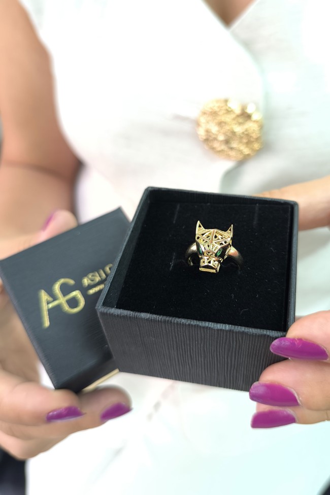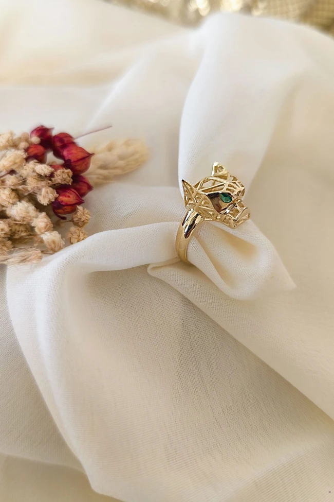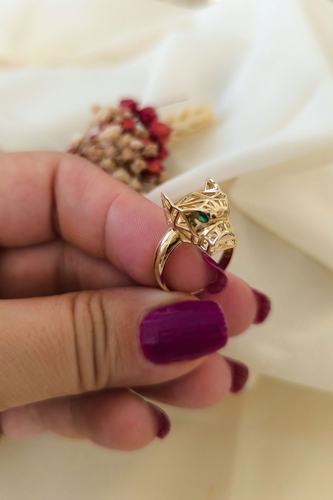 3.60 gram 14 ayar panter model detaylarıyla oldukça farklı ve şık tasarım altın yüzük.
