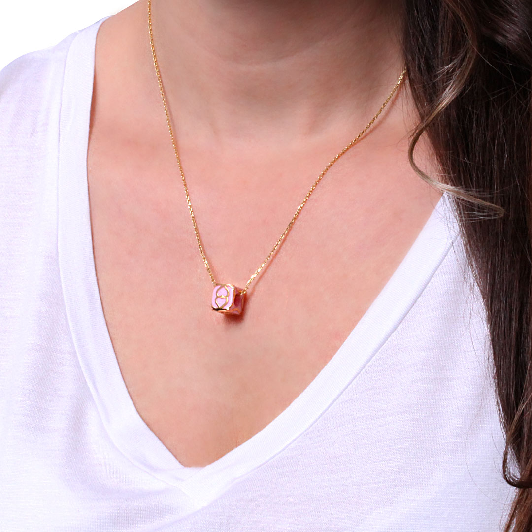 Pembe küp taş kombinasyonlu altın spor günlük kullanıma uygun kolye.