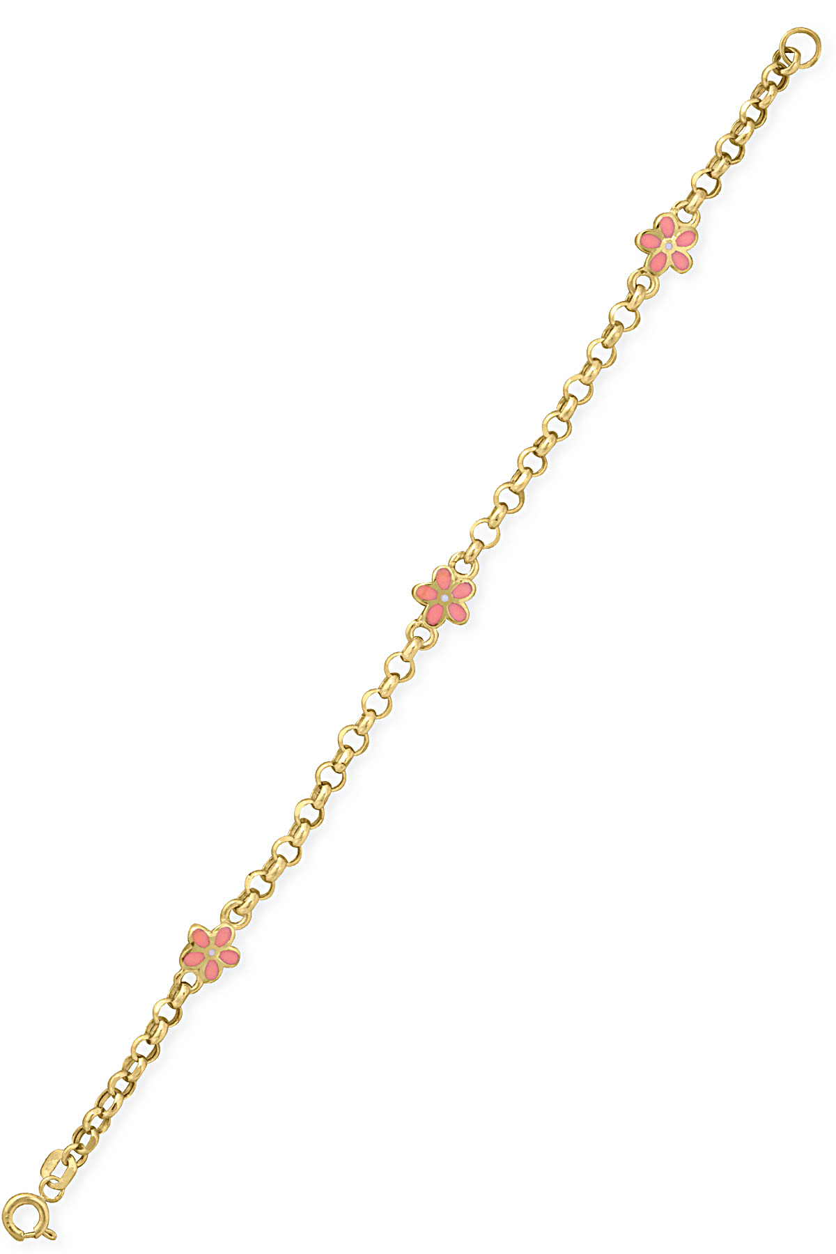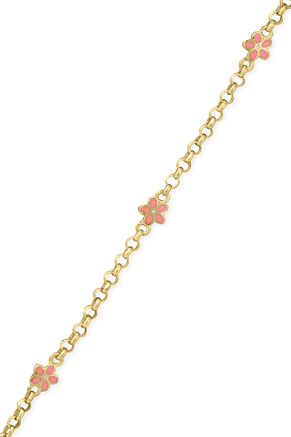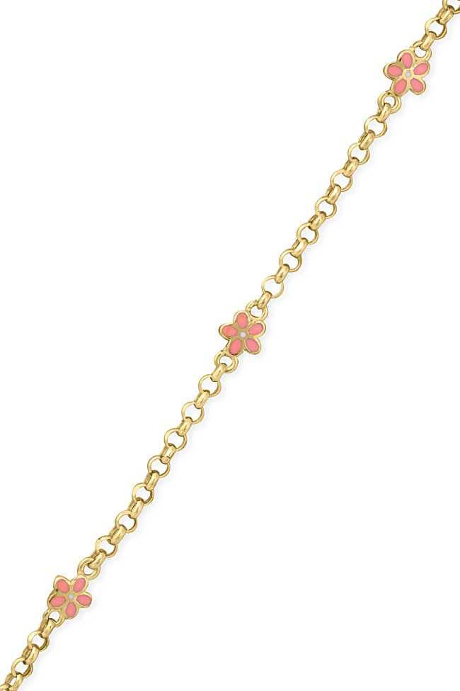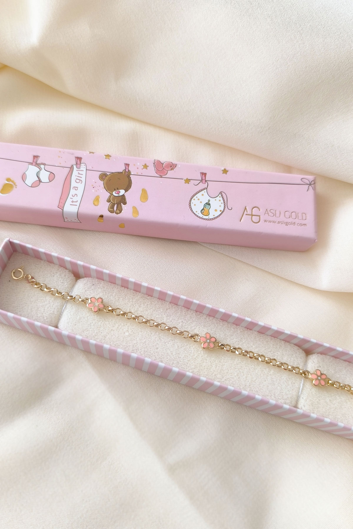 14.5 Cm boyunda günlük olarak da kullanıma uygun halka doc zincirli 14 ayar 2.70 gr ağırlığında altın pembe çiçek modelli kız çocuk bileklik.