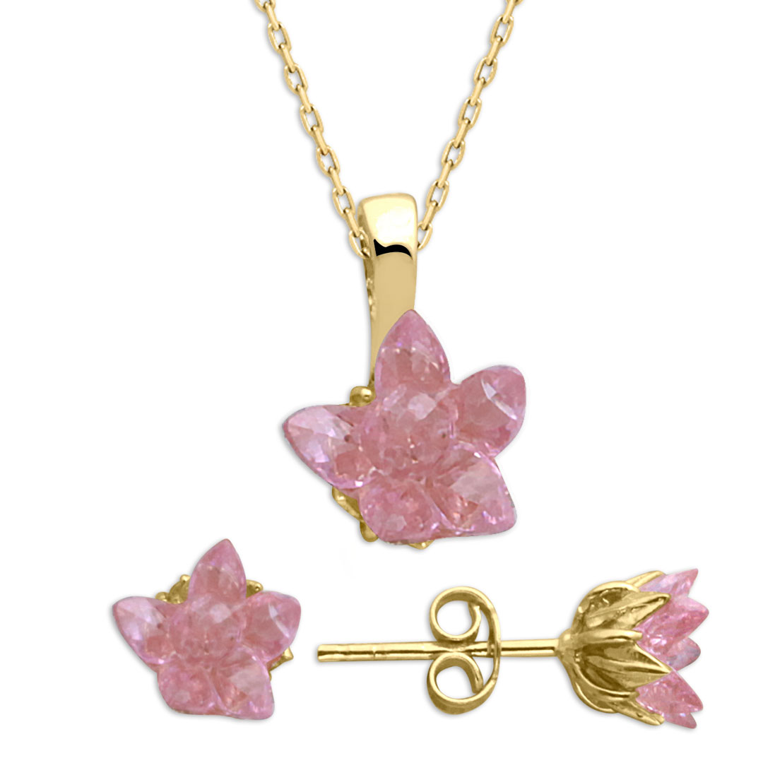 4,00 Gram Ağırlığında El İşçiliğiyle Takılan Markiz Taş Detaylı Minimal Tasarımıyla Oldukça Şık Ve Sade Bir Duruşa Sahip 14 Ayar Altın Pembe Lotus Çiçeği Küpe Kolye Takım. -Ruhsal uyanışın ve temizliğin sembolü olan, eşi benzeri doğada bulunmayan pembe renkli lotus çiçeği saflığı ve manevi mükemmelliği temsil eder. *Ürünlerimiz faturalıdır güvenle satın alabilirsiniz, özel hediye kutusunda ücretsiz kargo ile gönderilecektir.