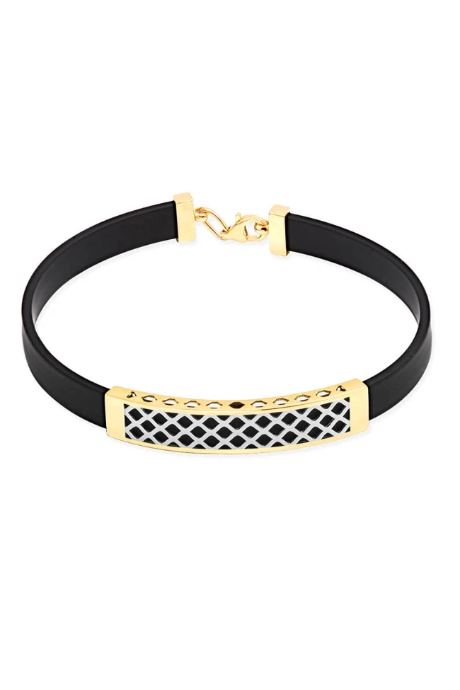 14 Ayar altın petek desenli kauçuk erkek bileklik. Şık ve ışıl ışıl bir duruşa sahip elit modelleri seven beylerin severek kullanacağı spor tasarım.