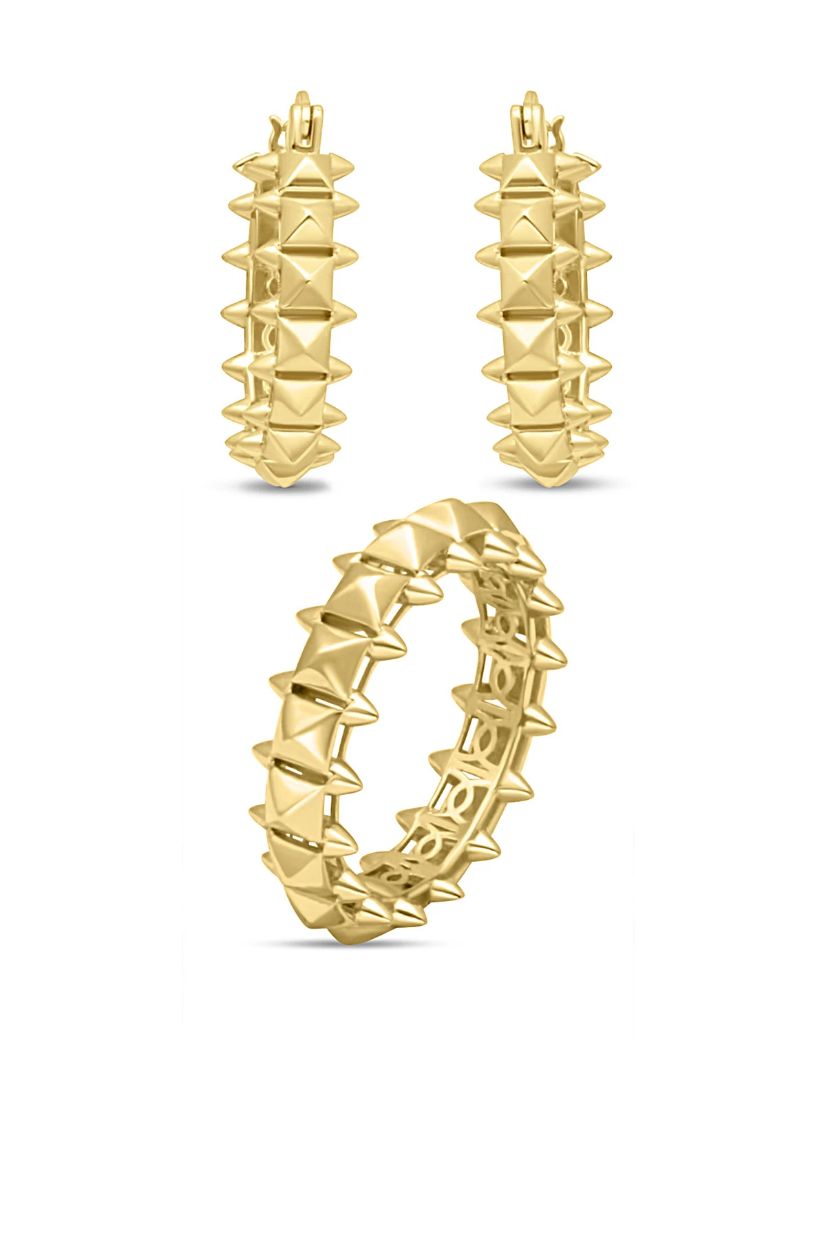 9.35 Gram Ağırlığında 14 Ayar Şık Ve Modern Tasarımıyla Farklı Bir Havaya Sahip Piramit Model Tasarım Taşsız Altın Küpe Yüzük Takım.