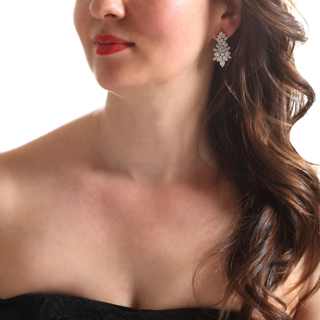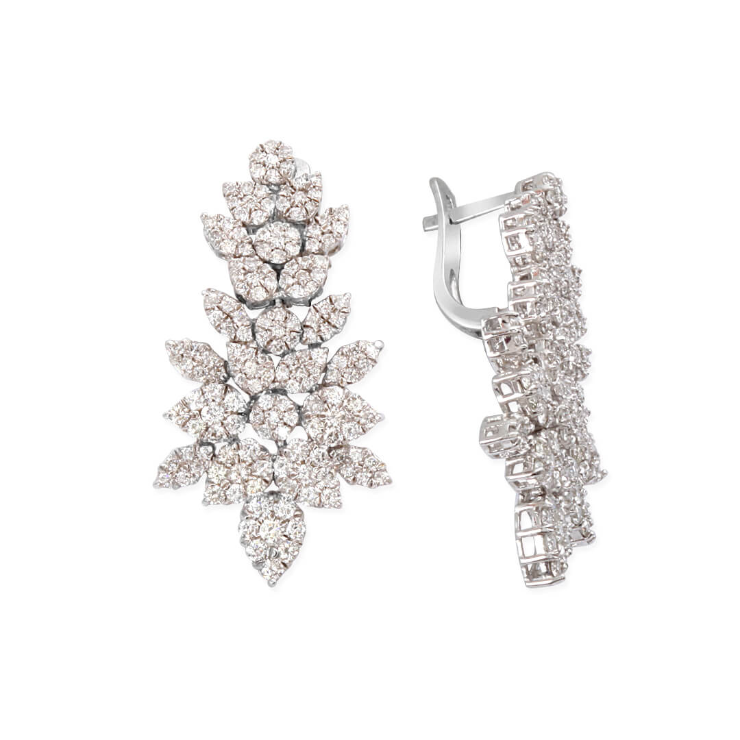 3.15 karat yuvarlak G-VS kesim pırlantalarla kombinlenerek el emeği ile özel işçilik kalitesinde tasarlanmış gösterişli oldukça şık ve elit bir modele sahip pırlanta 18 ayar beyaz altın küpe.