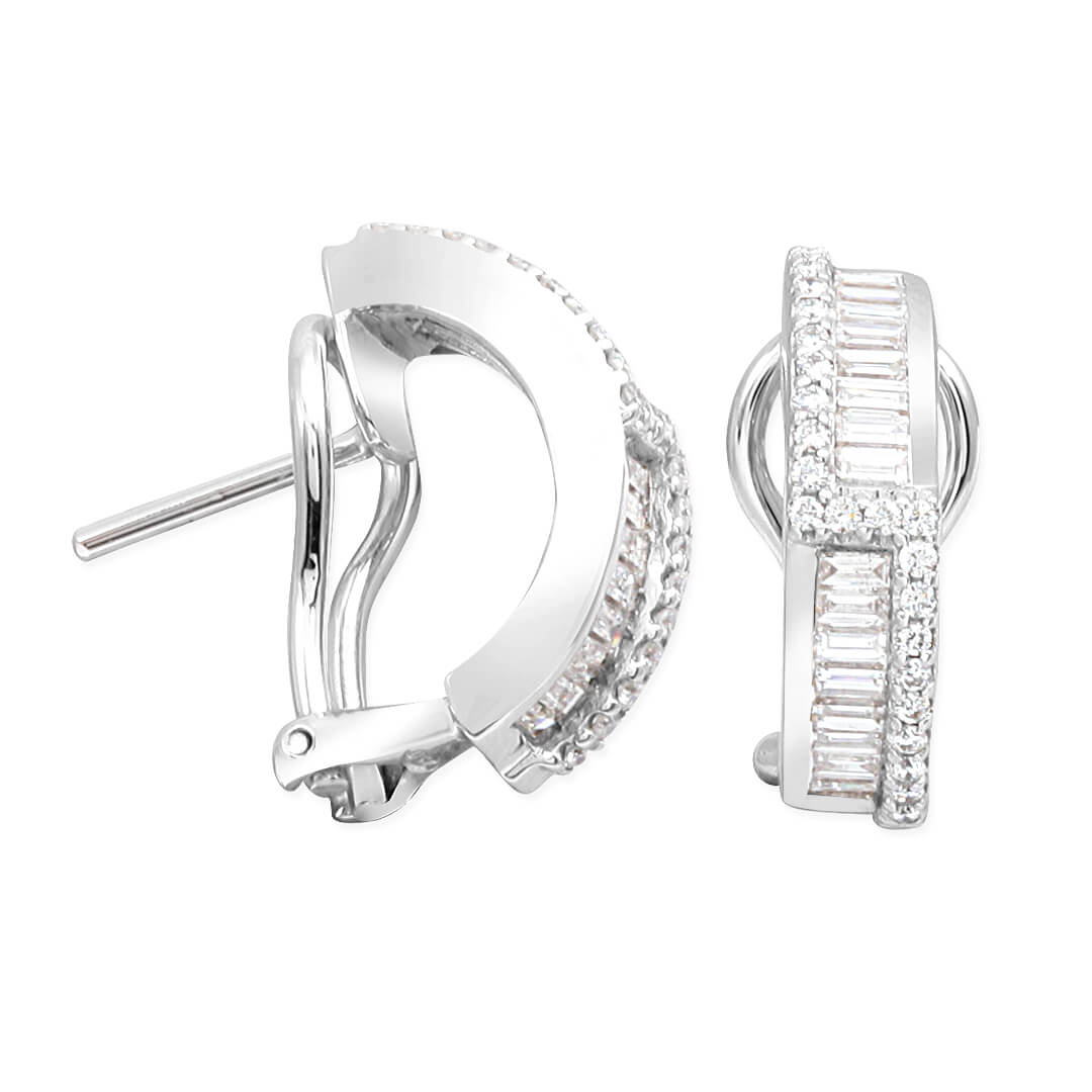 1.22 karat baget ve yuvarlak G-VS2 kesim pırlantalarla kombine taşlanmış el emeği, özel işçilik kalitesiyle tasarlanmış klipsli oldukça şık ve elit bir modele sahip pırlanta 18 ayar beyaz altın baget küpe.