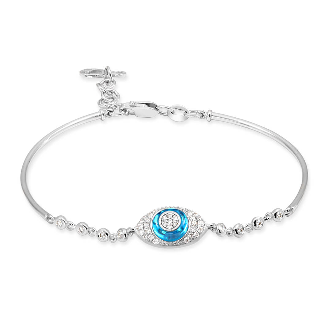 Aqua göz üzeri pırlanta taş kombinasyonu ile özel bir duruşa sahip 14 ayar beyaz altın 0.23 F-SI kesim ışıl ışıl taşlarıyla ışıltısına her anınızda hayran bırakan günlük olarak da kullanabileceğiniz hem fantazi hem spor model pırlanta göz bileklik.