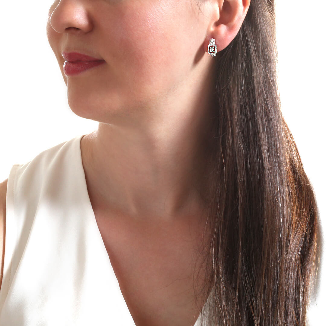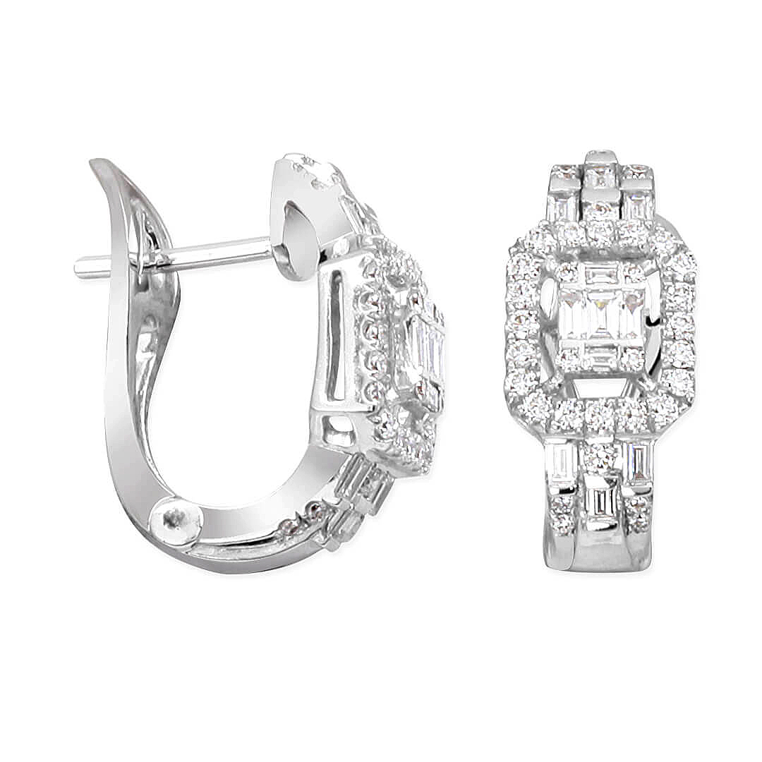 0.62 karat baget ve yuvarlak G-VS2 kesim pırlantalarla kombine taşlanmış el emeği, özel işçilik kalitesiyle tasarlanmış klipsli oldukça şık ve elit bir modele sahip pırlanta 18 ayar beyaz altın baget küpe.