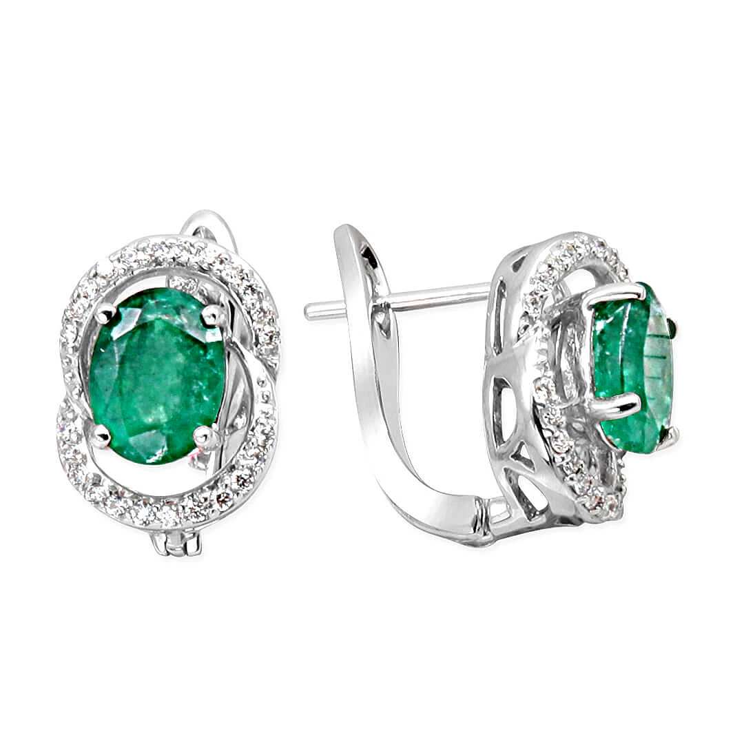 0.28 karat yuvarlak H-VS kesim pırlantalarla ve 2.5 Ct. oval kesim zümrütle taşlanmış el emeği, özel işçilik kalitesiyle tasarlanmış klipsli oldukça şık ve hoş bir modele sahip pırlanta 18 ayar beyaz altın zümrüt küpe.
