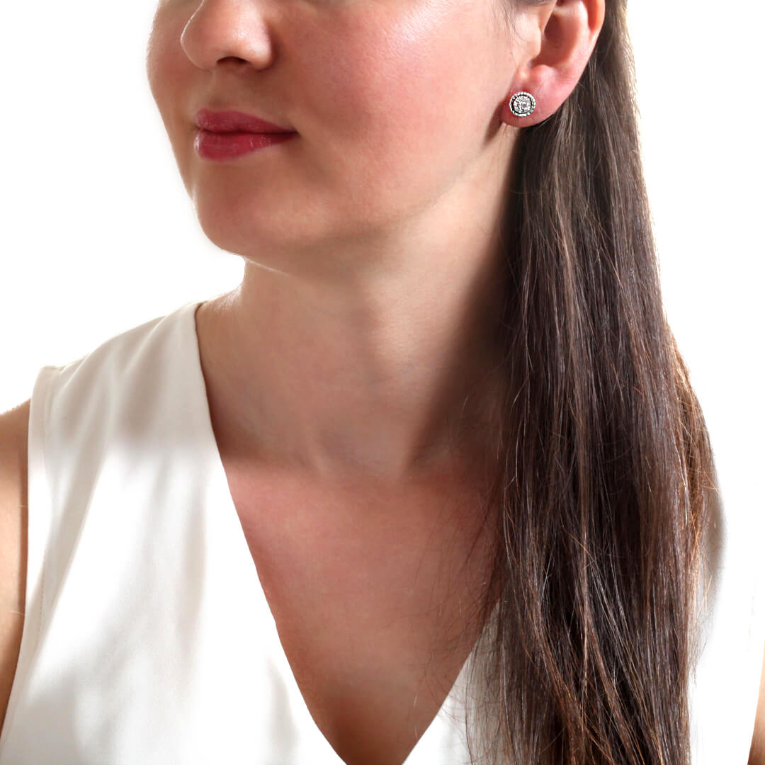 0.82 karat yuvarlak F-SI kesim pırlantalarla taşlanmış el emeği, özel işçilik kalitesiyle tasarlanmış vidalı oldukça şık ve spor bir modele sahip pırlanta 14 ayar beyaz altın küpe. Stilinize eşlik edecek günlük olarak kullanabileceğiniz harika bir tasarım.