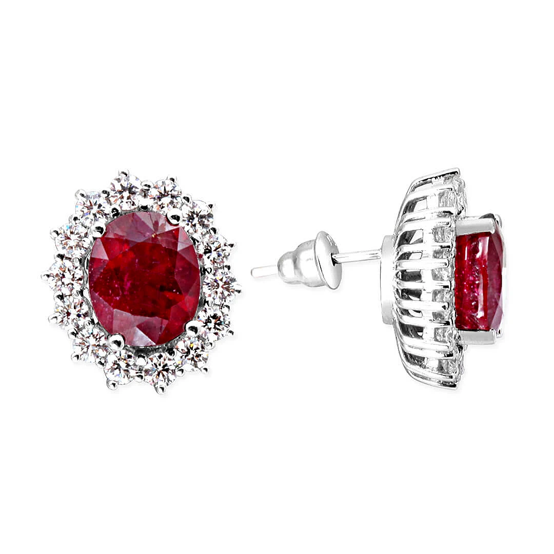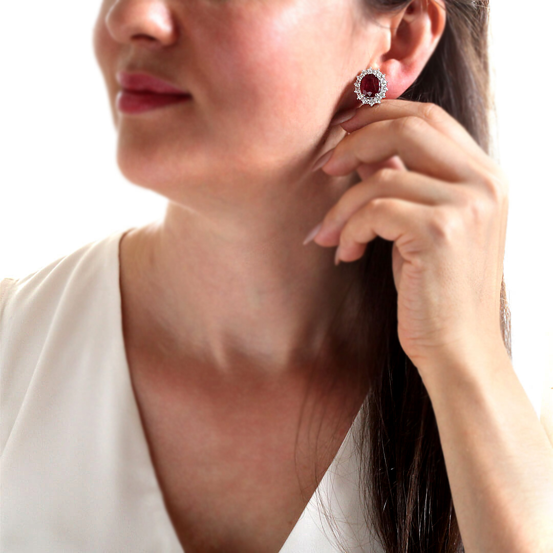 1.27 karat yuvarlak H-VS kesim pırlantalarla ve 7.23 Ct. oval kesim yakutlu özel işçilik kalitesiyle taşlanmış el emeği, oldukça şık ve hoş bir modele sahip pırlanta 18 ayar beyaz altın yakut küpe.
