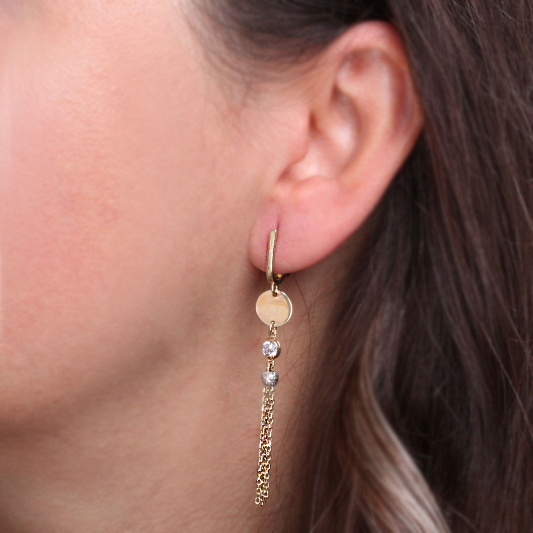 3.20 Gram Ağırlığında 14 Ayar Günlük Kullanıma Uygun Şık Model 6.5 Cm Sallantılı Zincirli Altın Küpe.