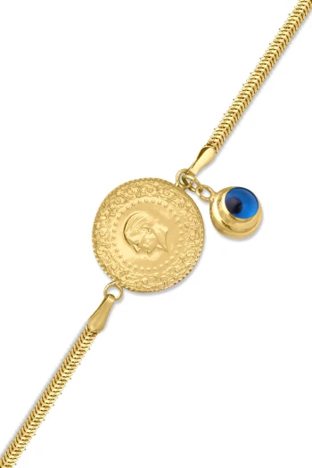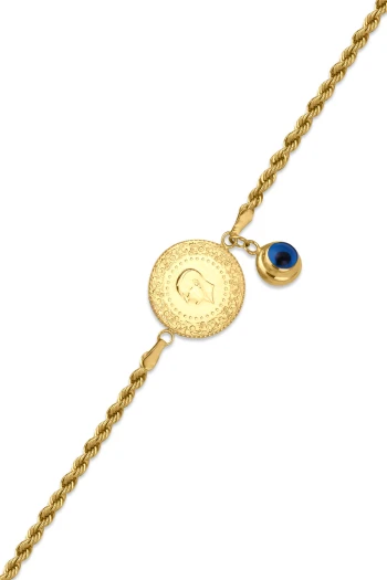Spor Ve Günlük Kullanıma Uygun 21.5 Cm Boyunda Işıl Işıl Pullu Zincir Detaylı 6.10 Gr. Ağırlığında Altın Çeyrekli Altın Bileklik.
