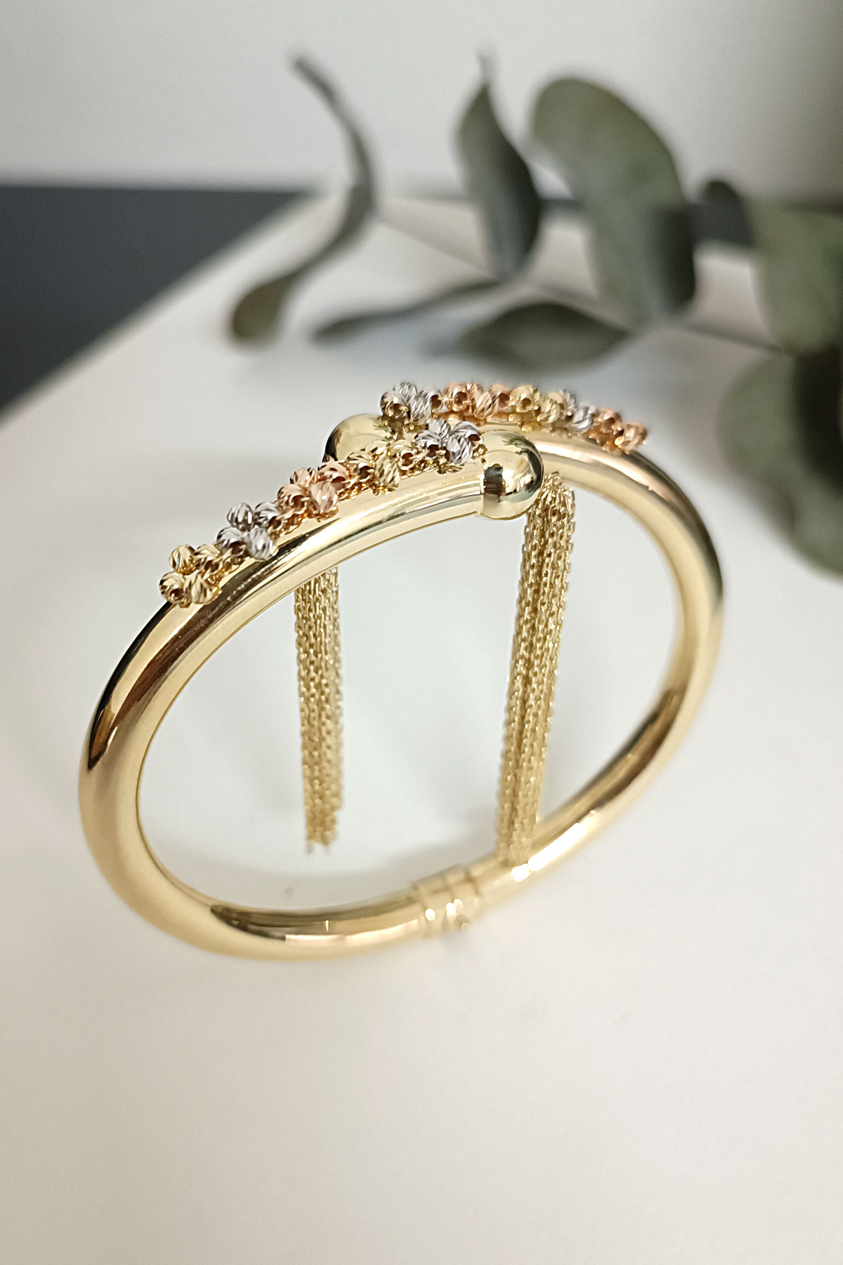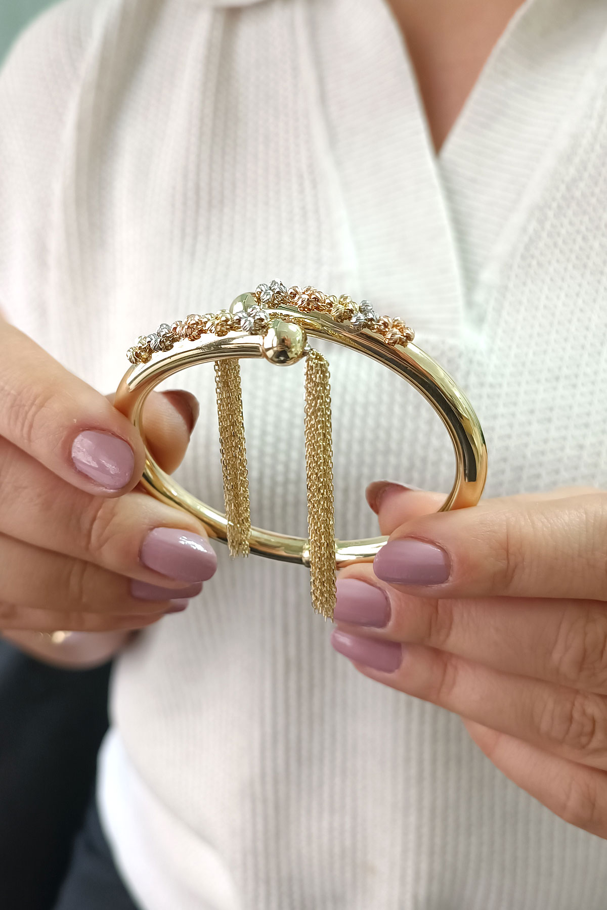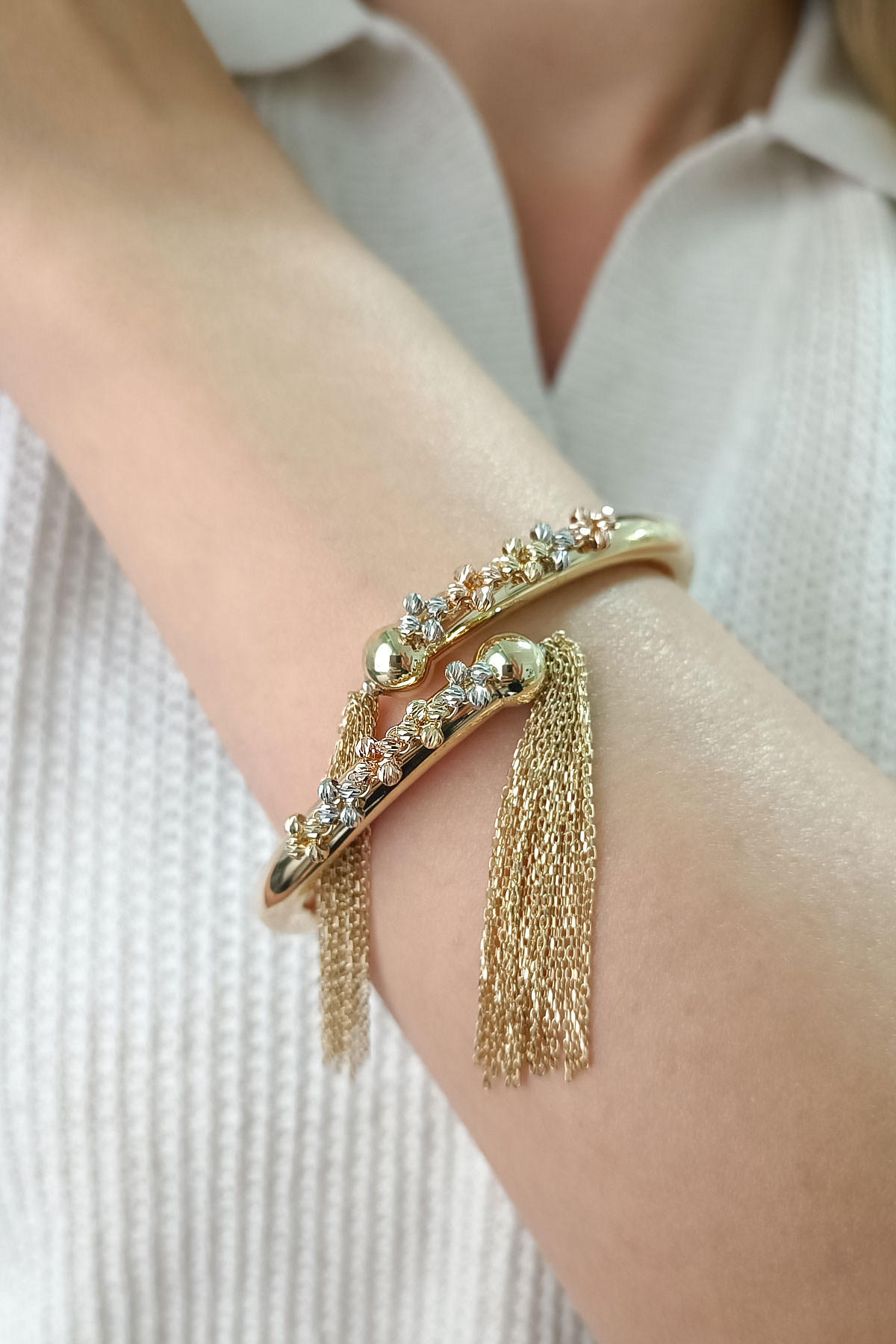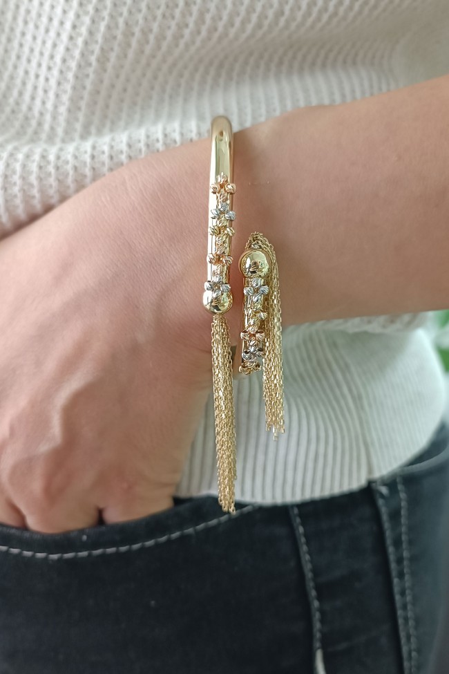 14 Ayarçift tarafı püskül başlı model şık tasarımı ile gösterişli ve spor duruşa sahip 17.90 gram ağırlığında altın bilezik.