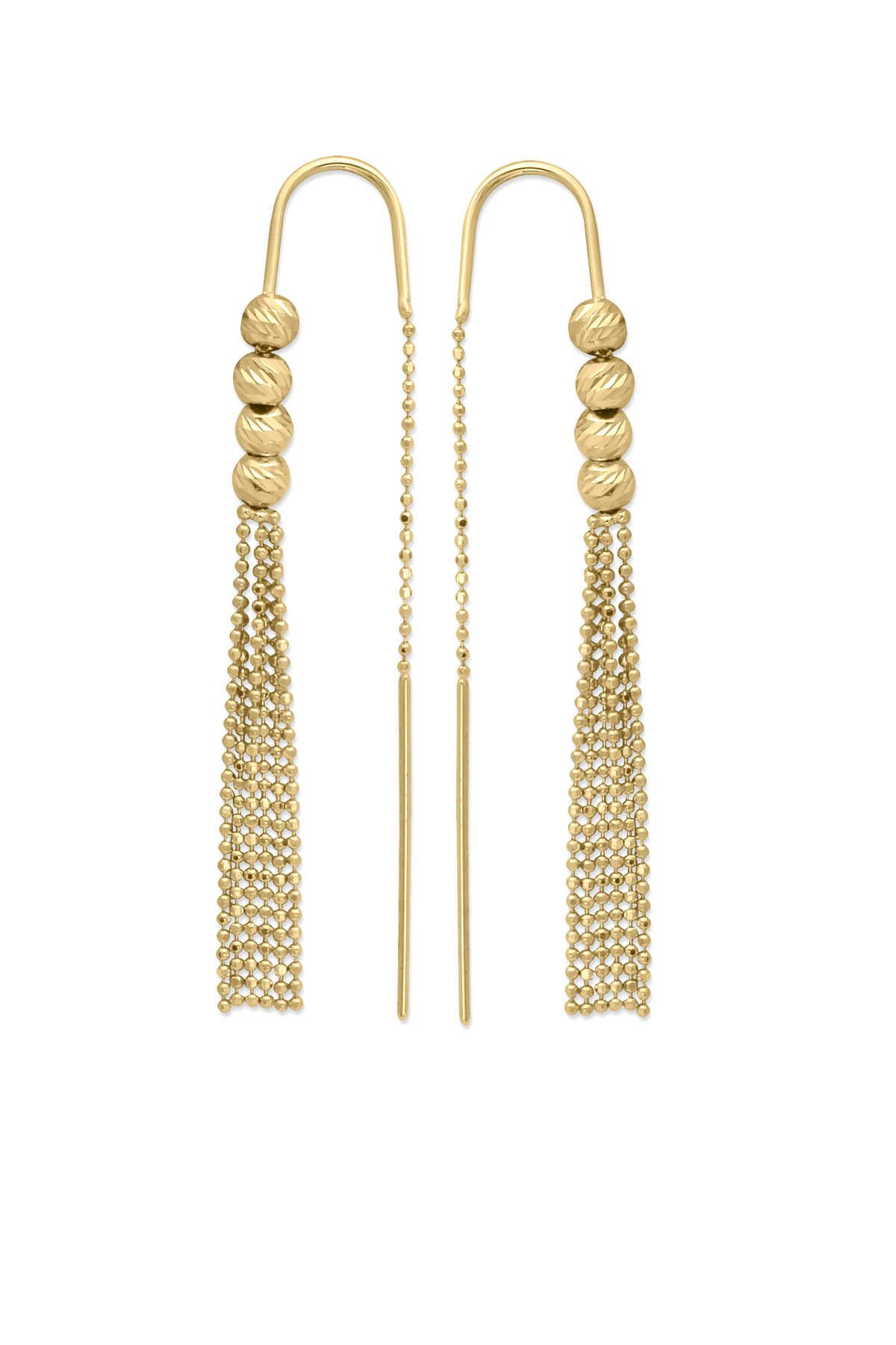 3.35 Gram Ağırlığında Püsküllü Tasarım Dorika Top Detaylı Dikkatleri Üzerine Toplayan 14 Ayar Günlük ve Şık Bir Havaya Sahip 6 Cm Boyunda Altın Sallantılı Küpe.