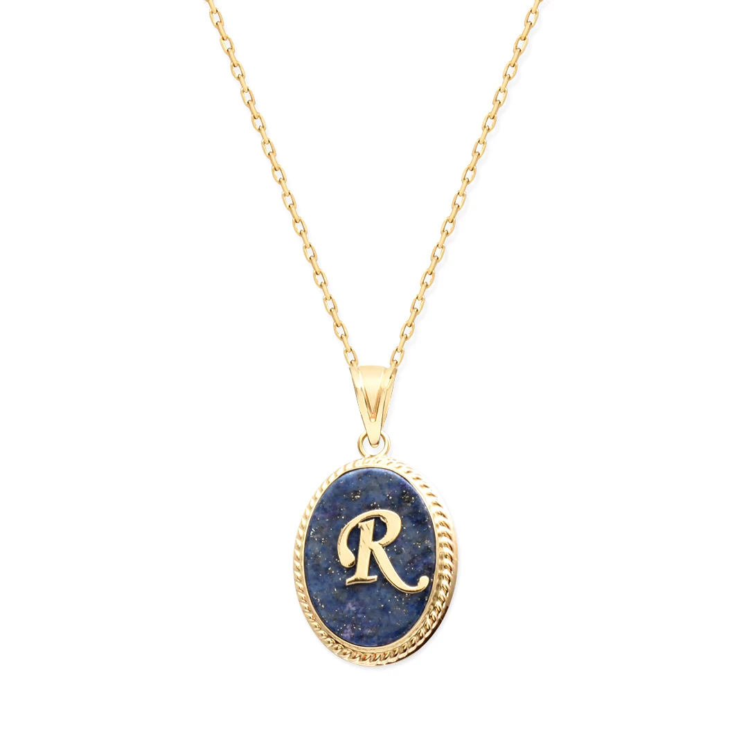 Lapis, lazunili diğer adı lacivert taşı üzerinde harfli trend sezon modası R harfi kolyeyi günlük olarak takabilirsiniz. Lapis taşı bir çeşit bakır cevheridir, kristal yapısı birbirine dik ama farklı uzunlukta eksenlere sahiptir. İçerisinde gece gökyüzüne dağılmış yıldızlar gibi altın rengi prit parçaları bulunur, evrenin gücünü ve enerjisini alıp beynimize yönlendirir.