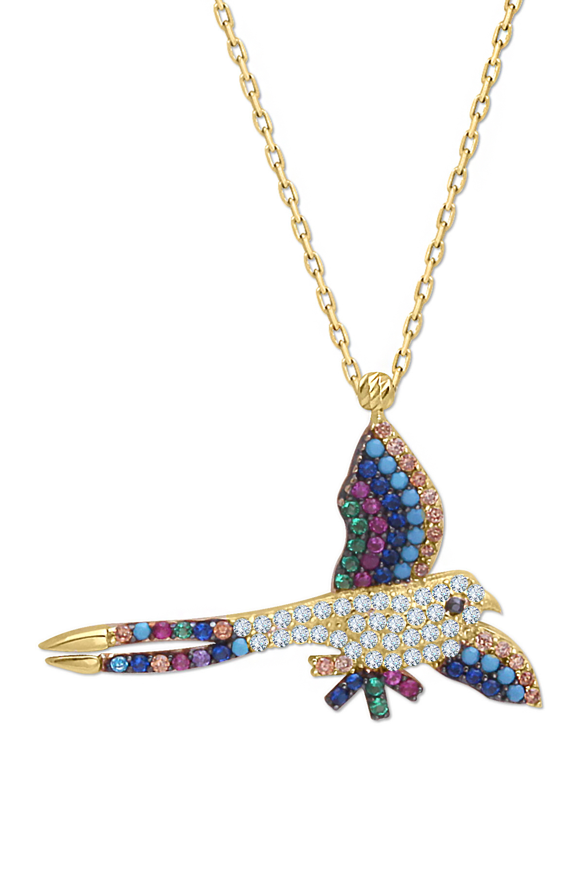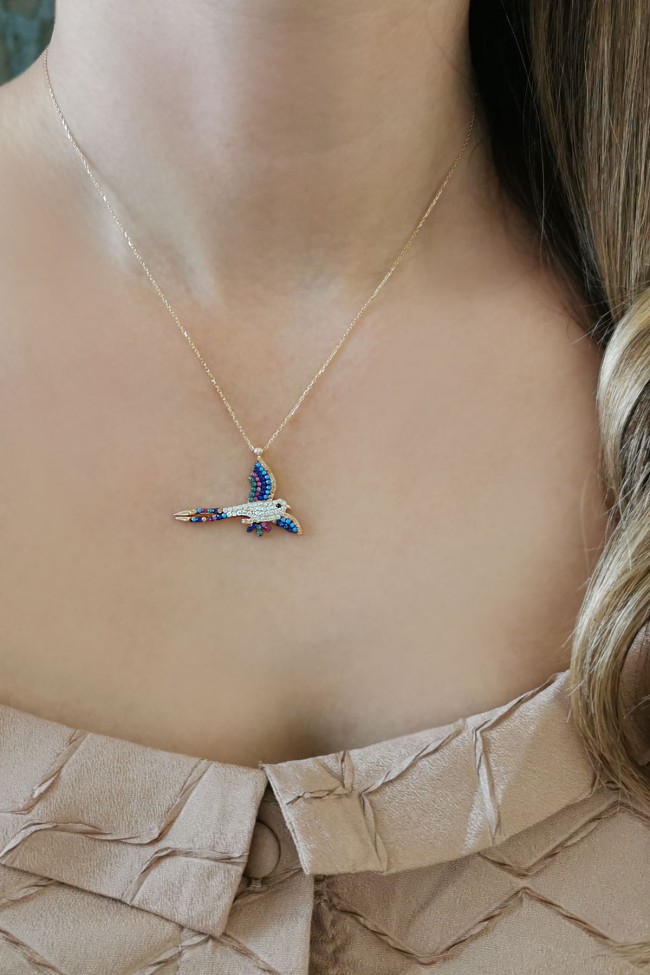 45 Cm Zincirli 14 Ayar Anka Kuşu Detaylı Işıl Işıl Kuyruğu Firuze Taşlı 2.90 Gr. Ağırlığında Altın Tasarım Kolye.