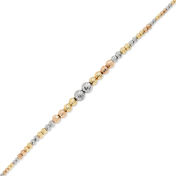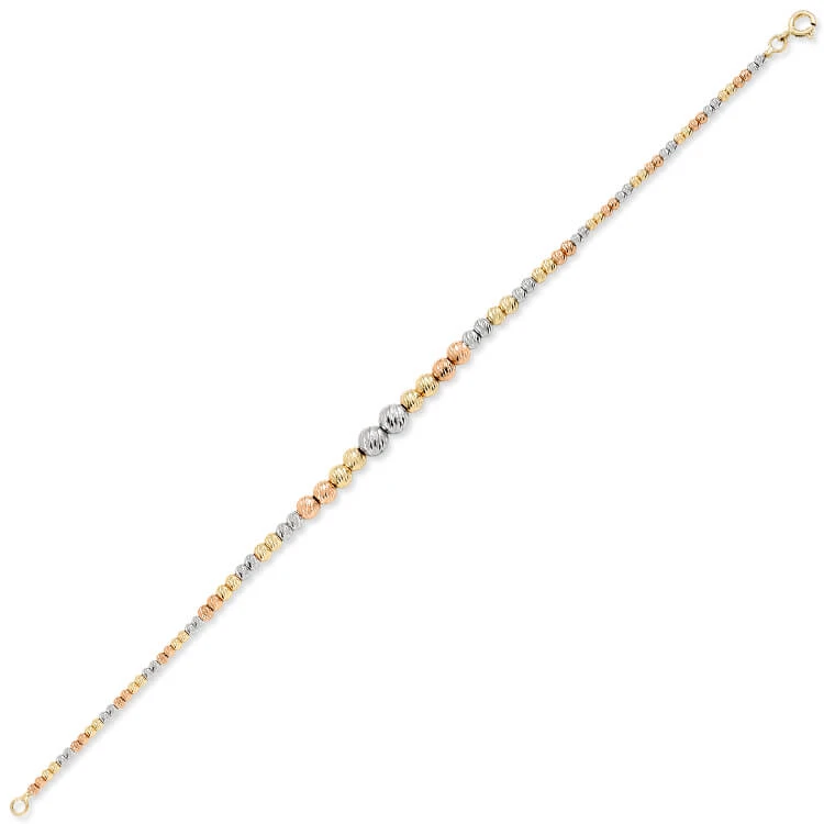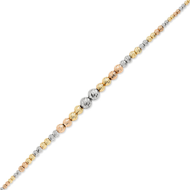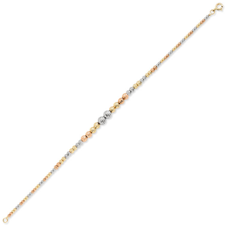 14 Ayar altın 4.25 gram ağırlığında şık ve gündelik kullanıma uygun 3 renkli altın toplu tasarım tek sıra dorika bileklik.