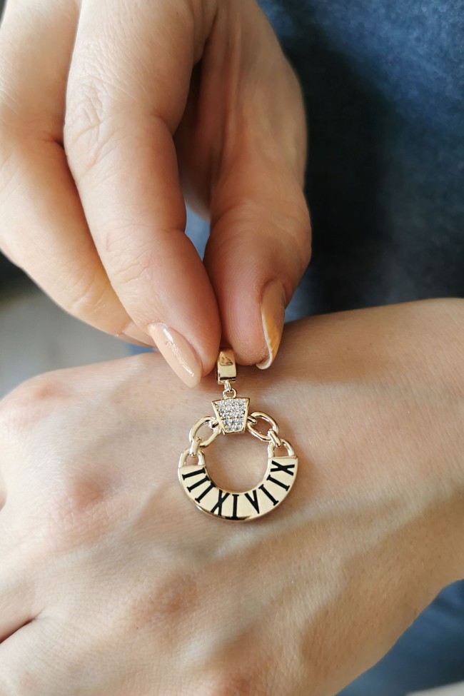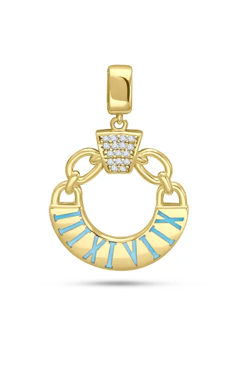 3.30 gr. 3 cm boyutunda siyah mine roma rakamlı model 14 ayar altın tasarım kolye ucu.