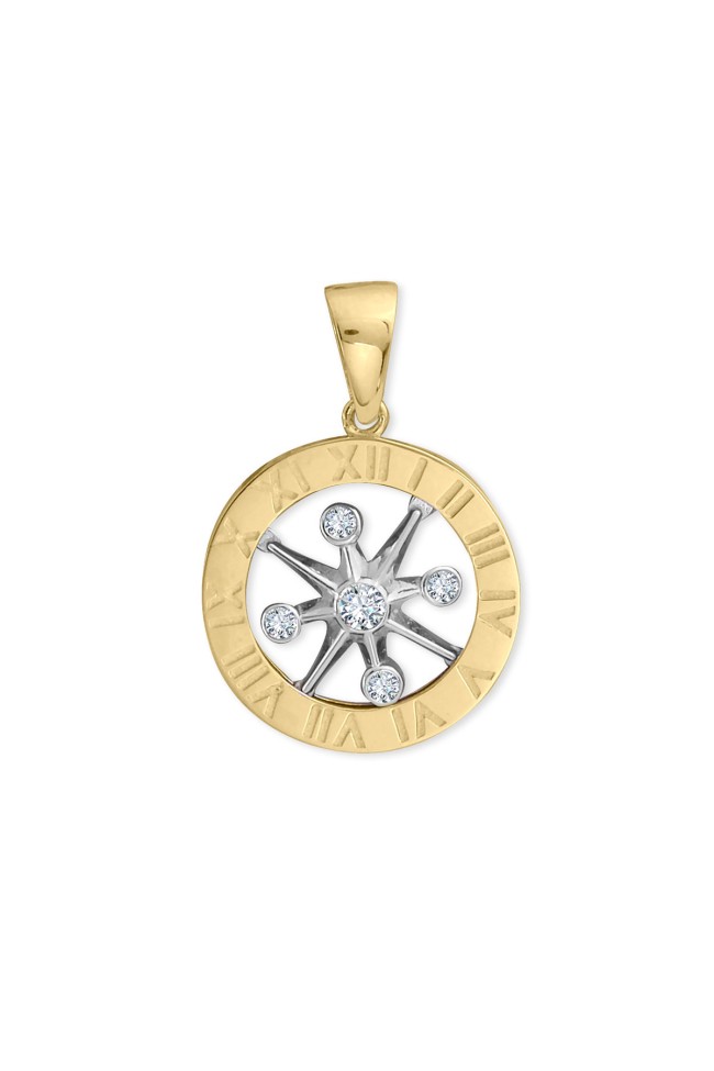 14 Ayar orta pusula kısmı hareketli, döner tasarım şık, spor ve günlük kullanıma uygun altın zirkon taşlı Roma rakalmlı kolye.