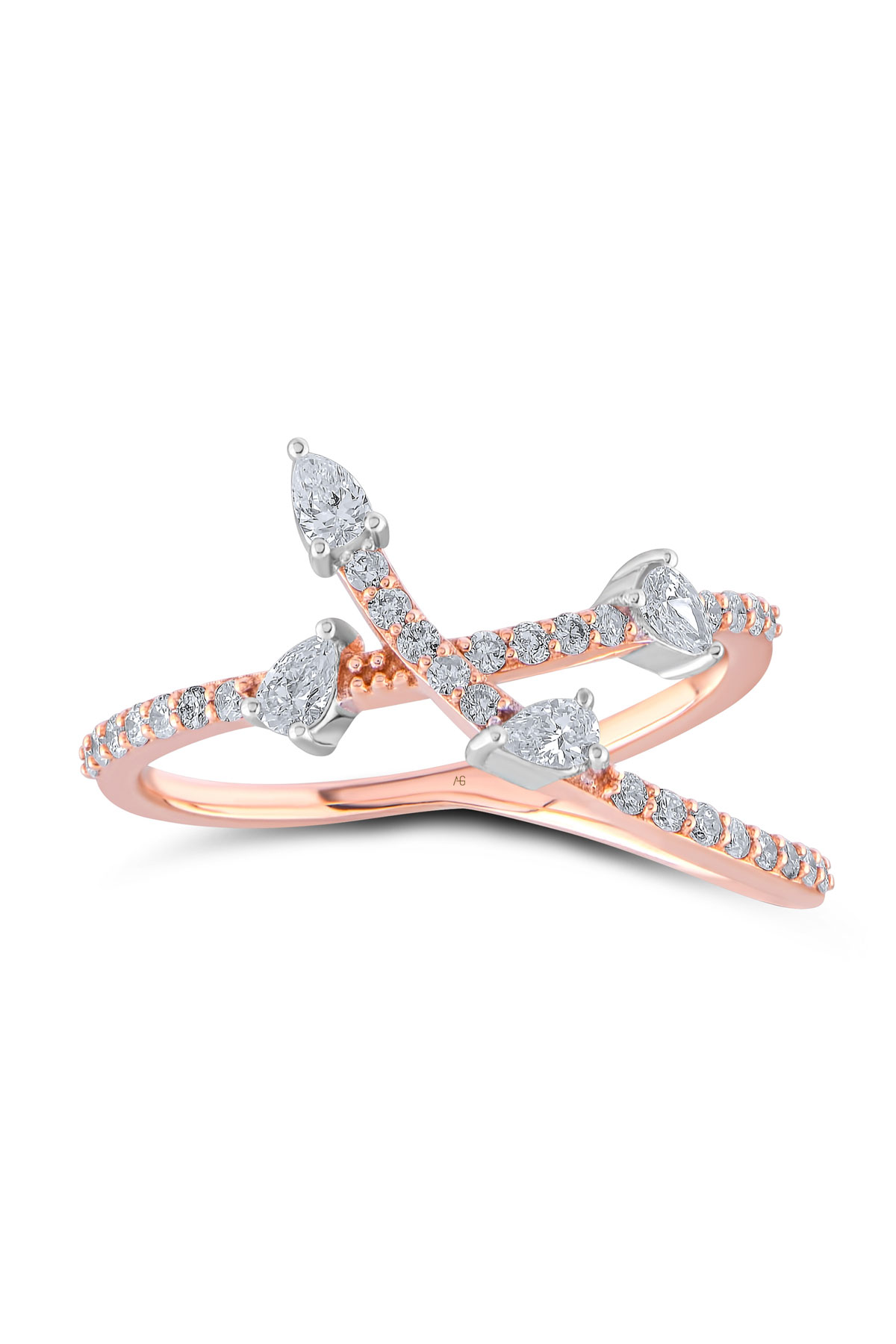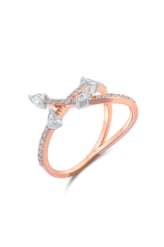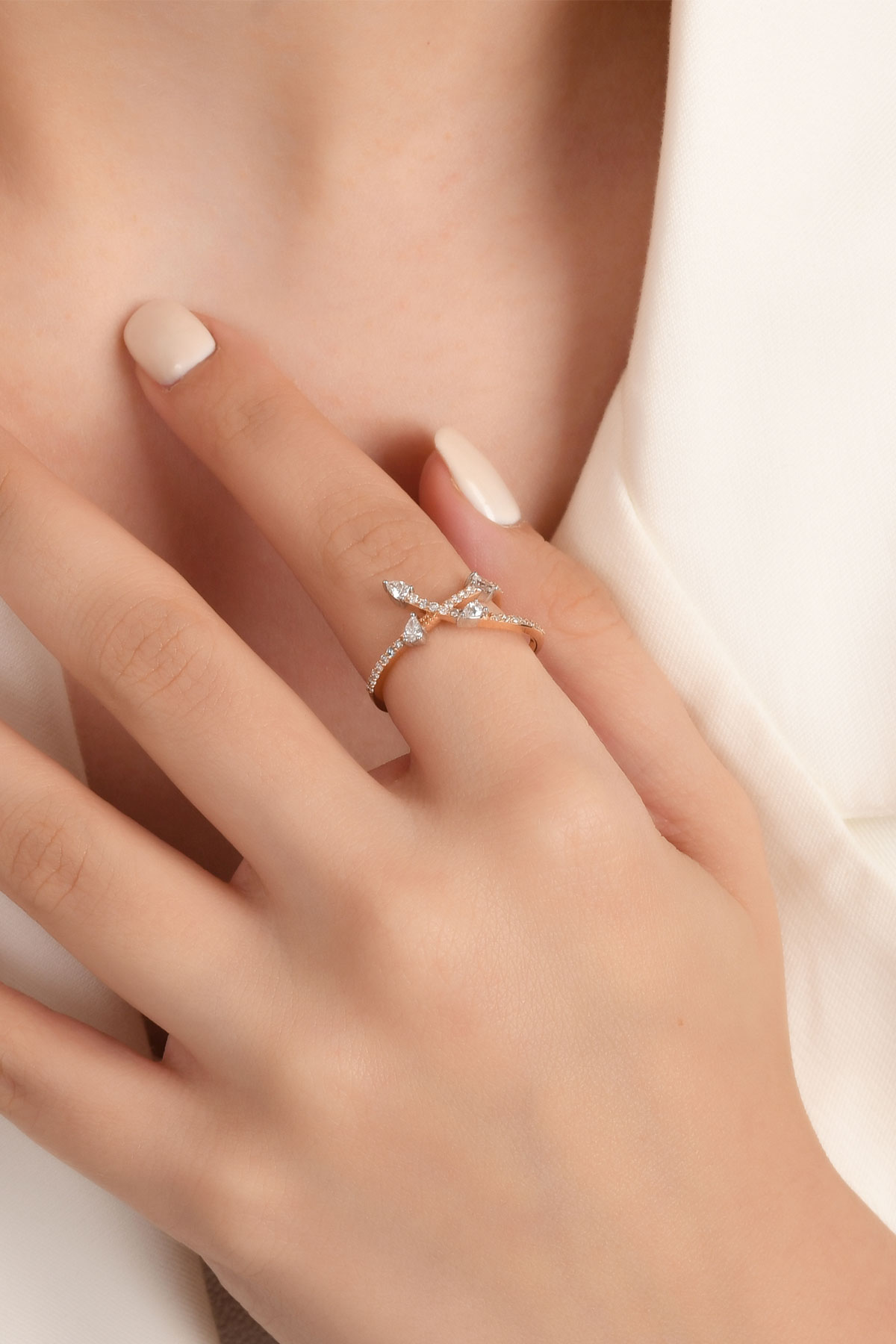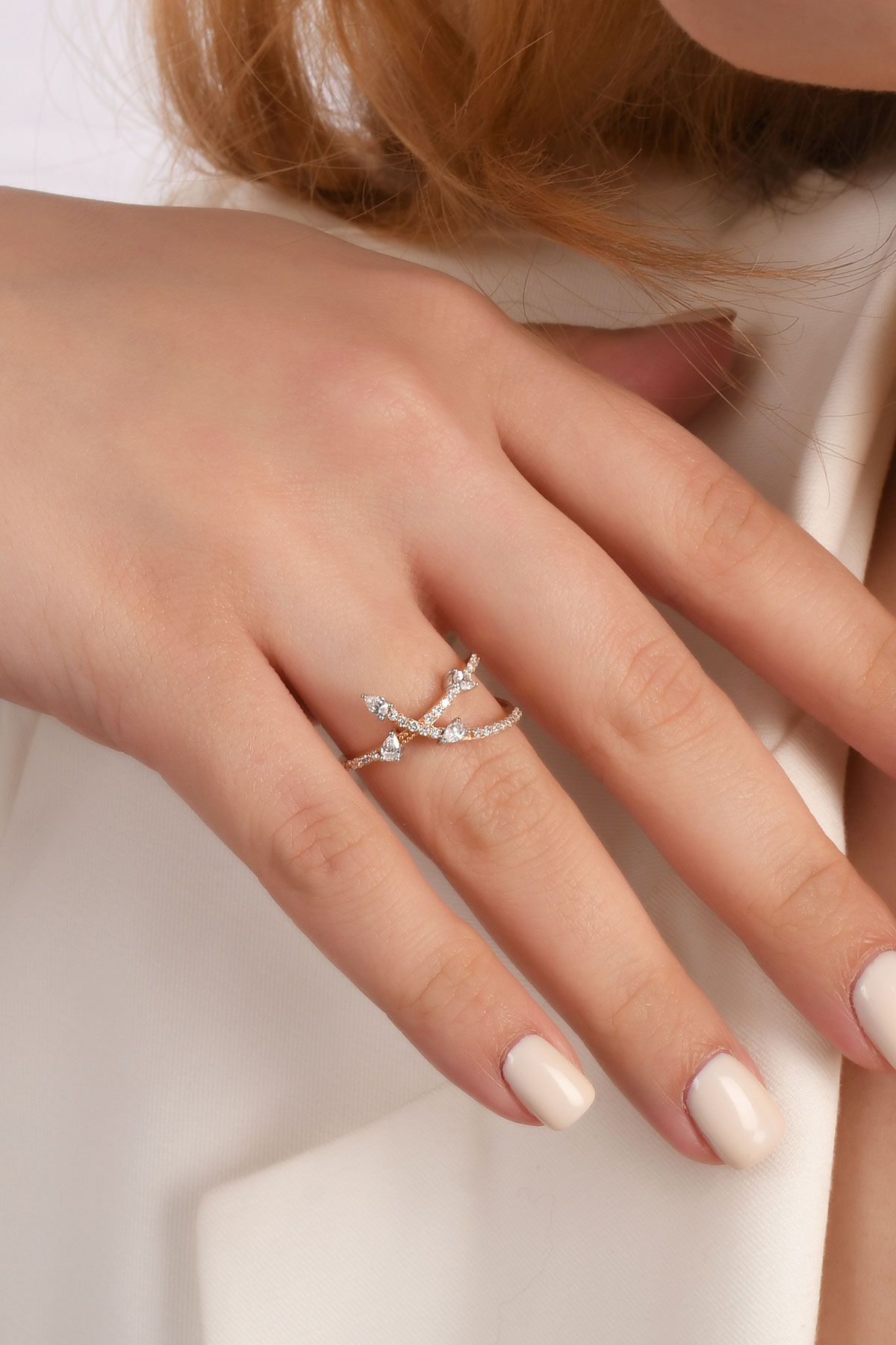 0.43 Ct.F/VS taş detaylarına sahip 18 ayar rose gold minimal markiz taşlı minimal tasarım pırlanta yüzük.
