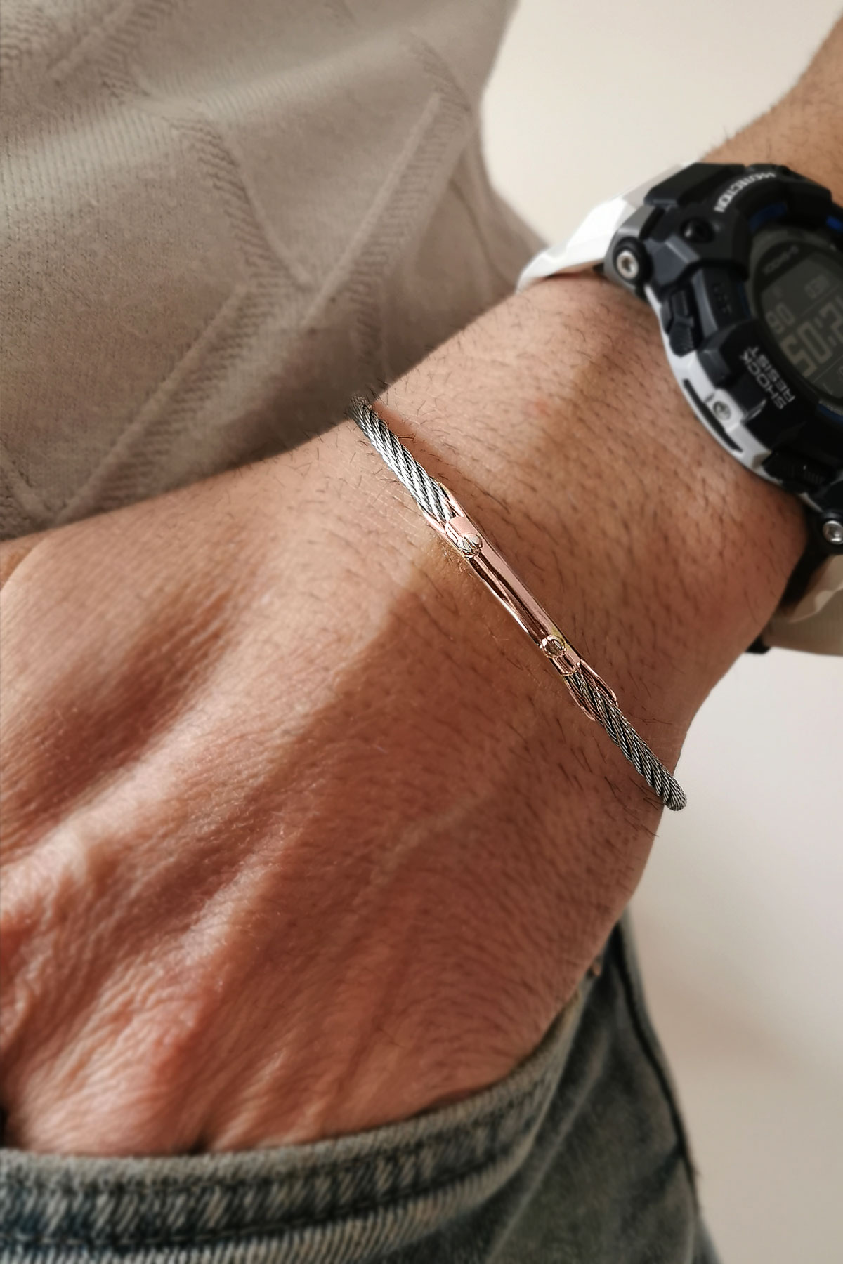 14 Ayar rose gold havalı ve şık tasarımı ile modern duruşa da sahip günlük kullanıma uygun 5.00 gram ağırlığında tasarımıyla spor model altın erkek çelik bilezik.