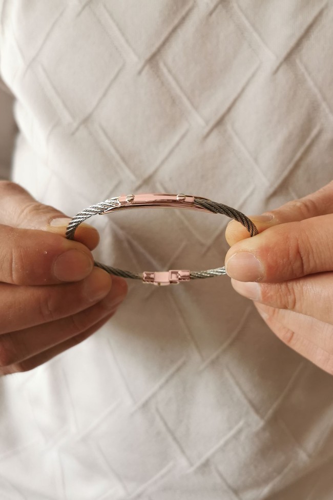 Modeldeki rose gold üst ve kilit parçalar 14 ayar altındır 5.00 gramdır, ortalama 7.50 gram çelik ağırlığı mevcuttur, kararma yapmaz uzun ömürlü kullanım için deniz ve havuz suyuna sokmamanızı öneririz.