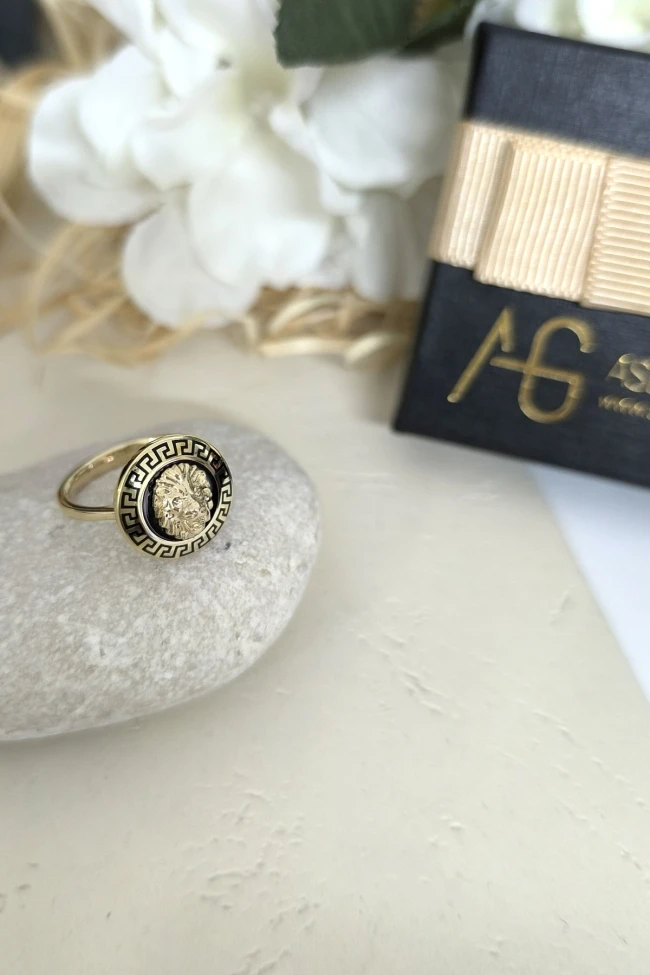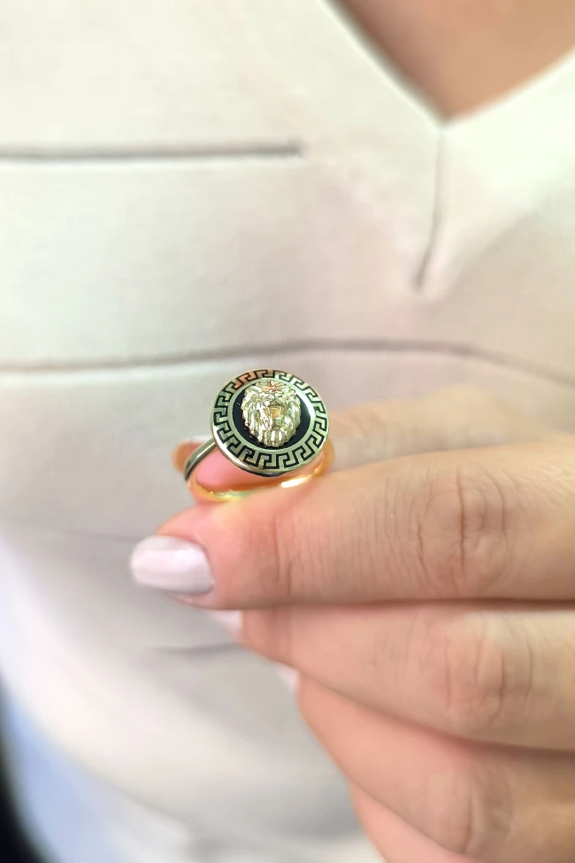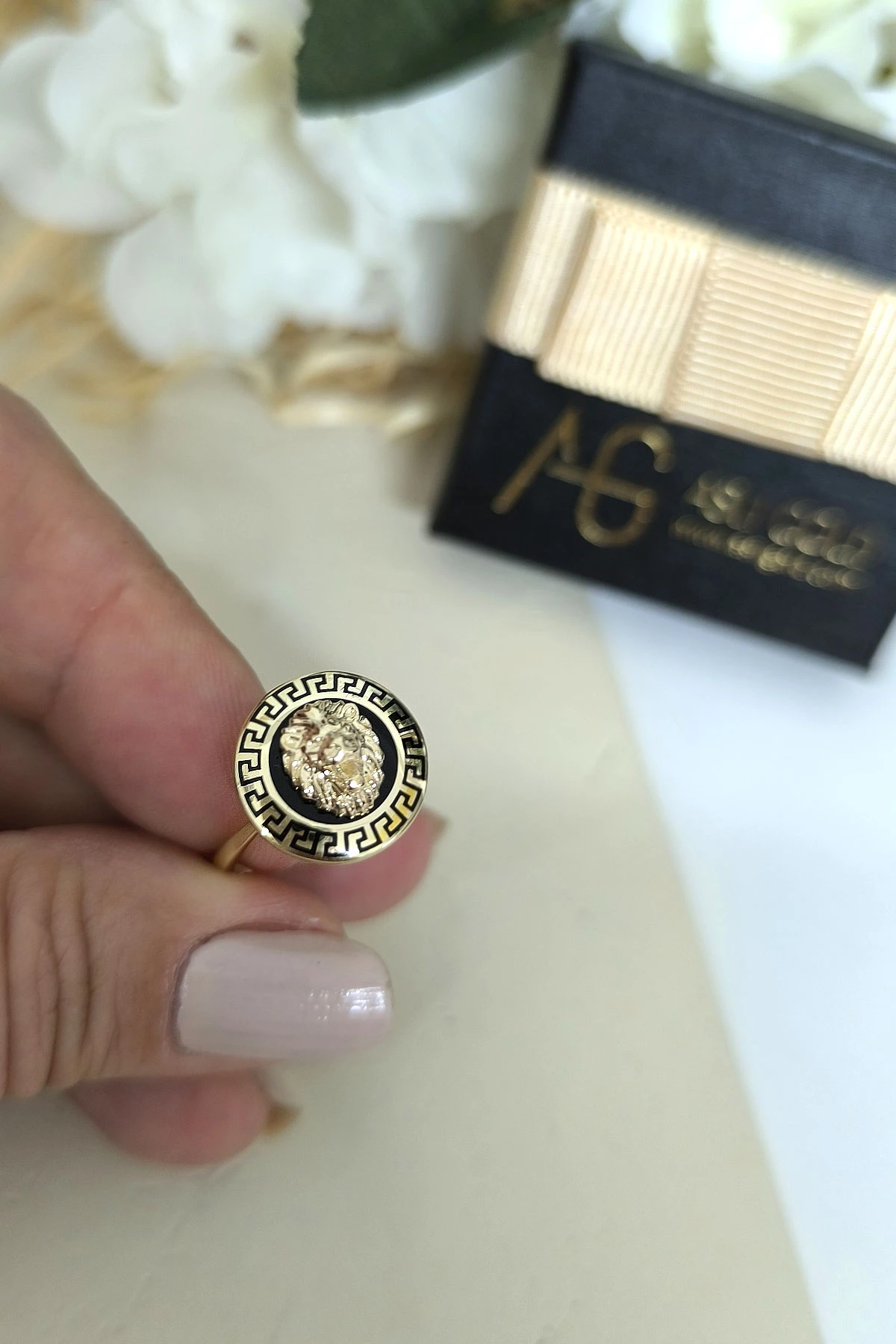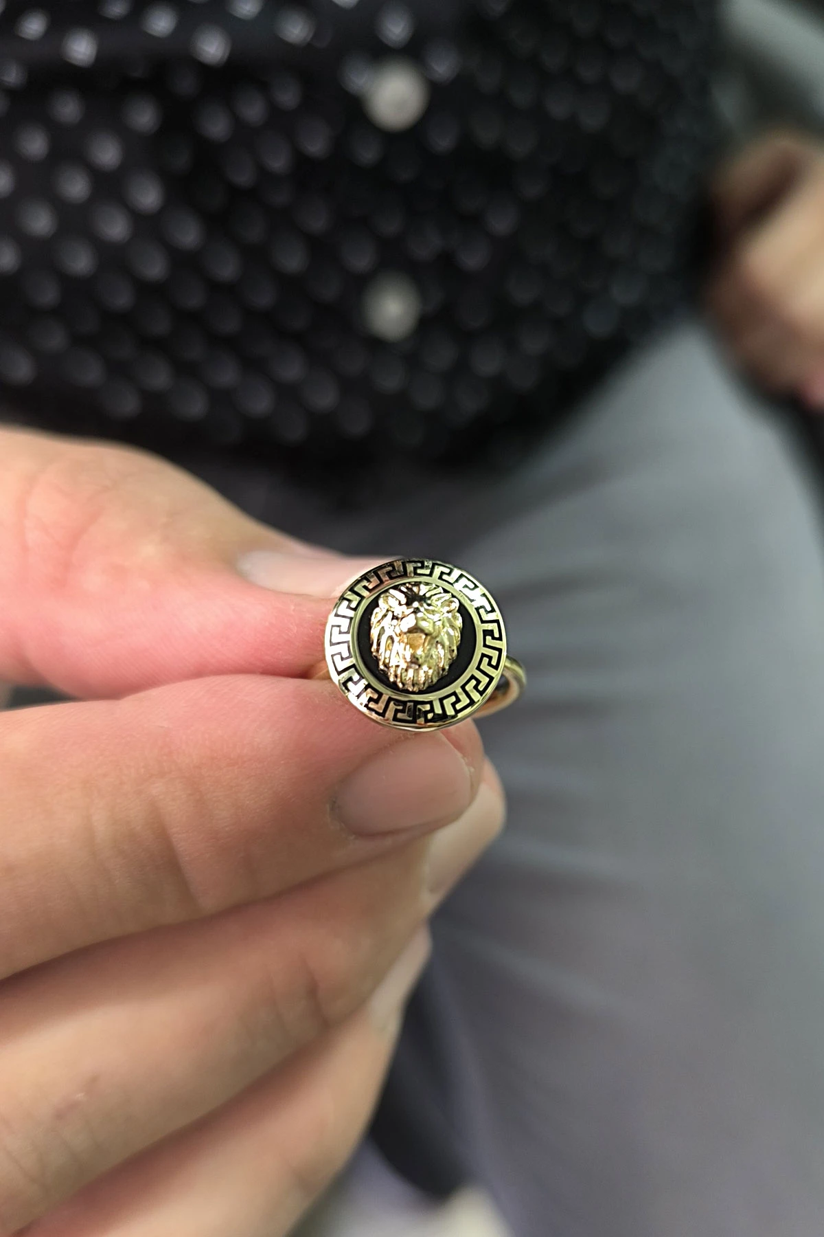 14 ayar sarı altın günlük kullanıma uygun 4.50 gram ağırlığında altın taşsız spor yuvarlak form mineli pana işleme kenarlı  aslan model unisex yüzük.