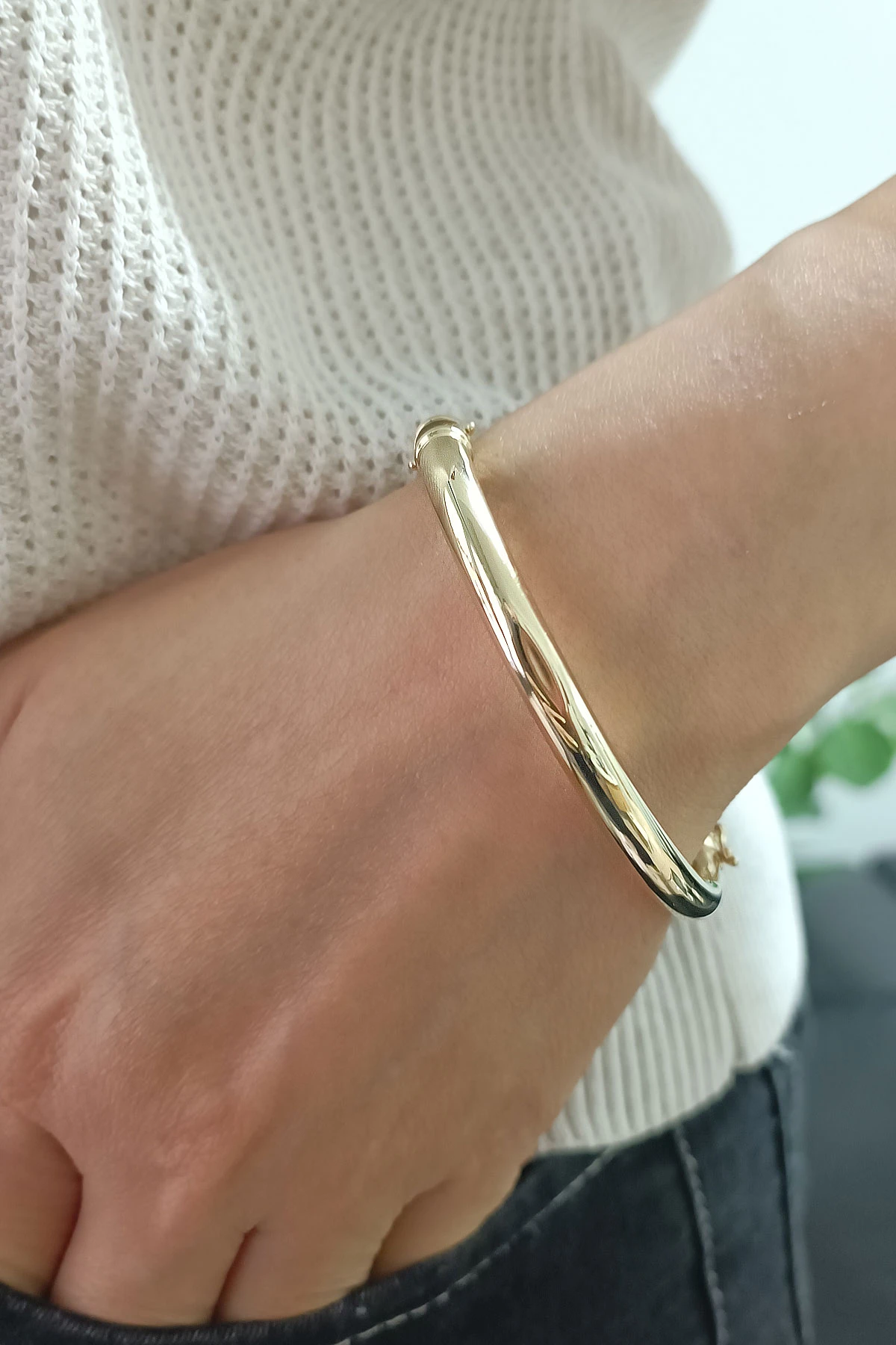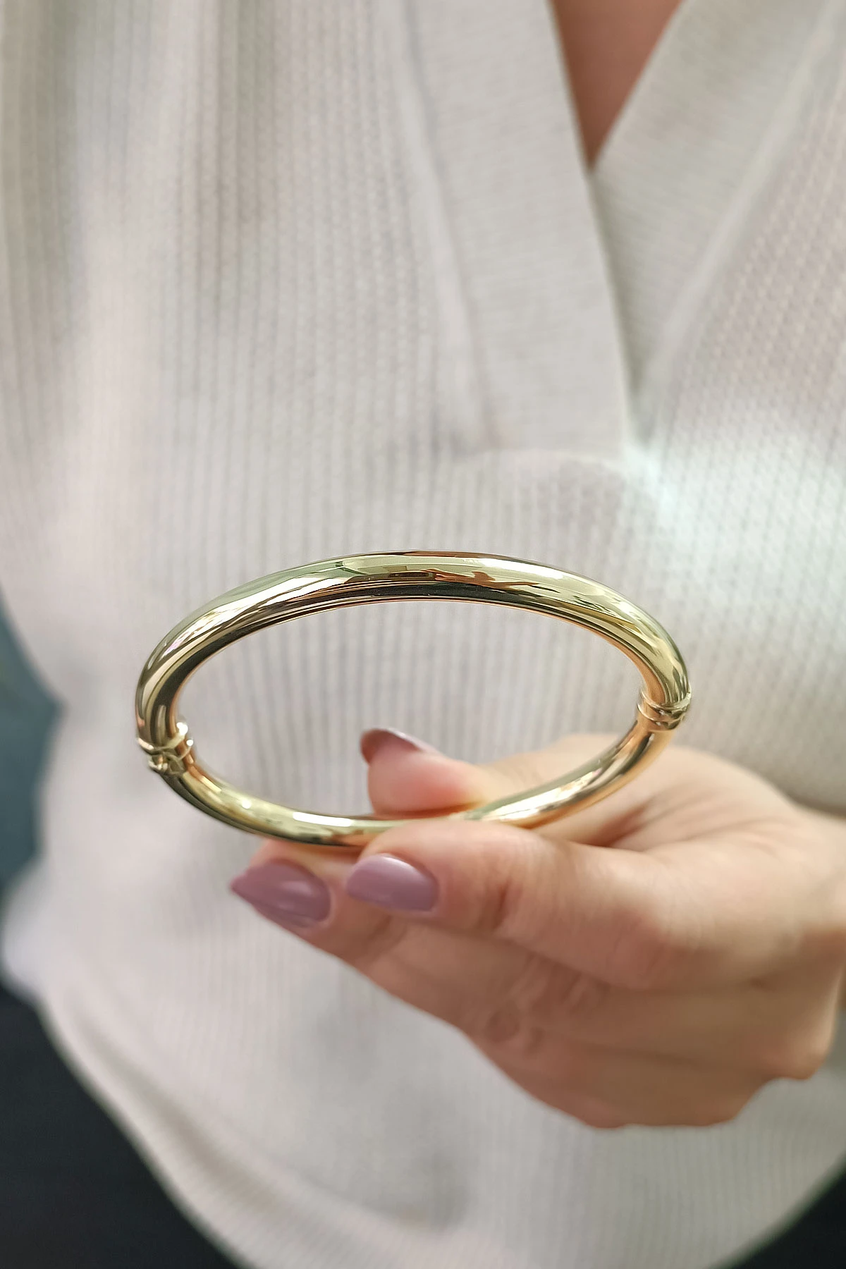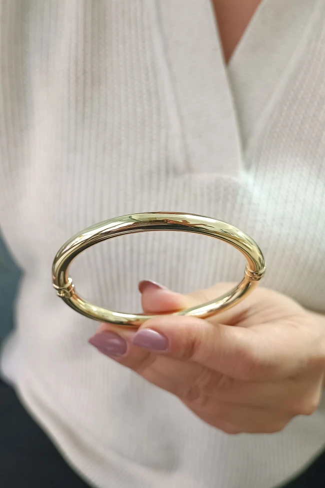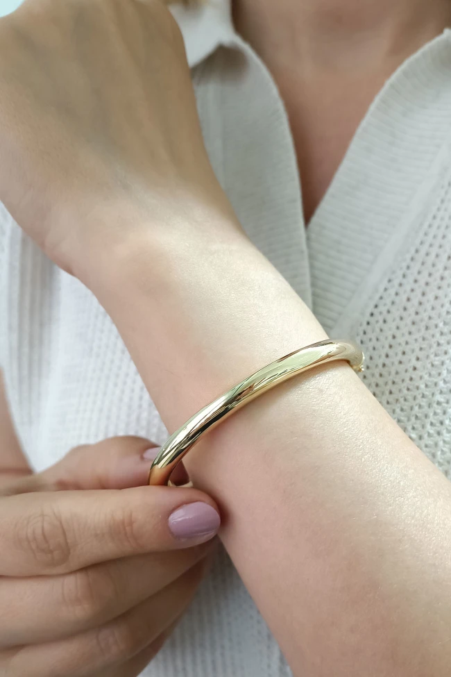 14 Ayar düz 6 mm genişliğinde sade ve şık tasarımı ile gösterişli ve elit duruşa sahip 12.20 gram ağırlığında altın boru bilezik.