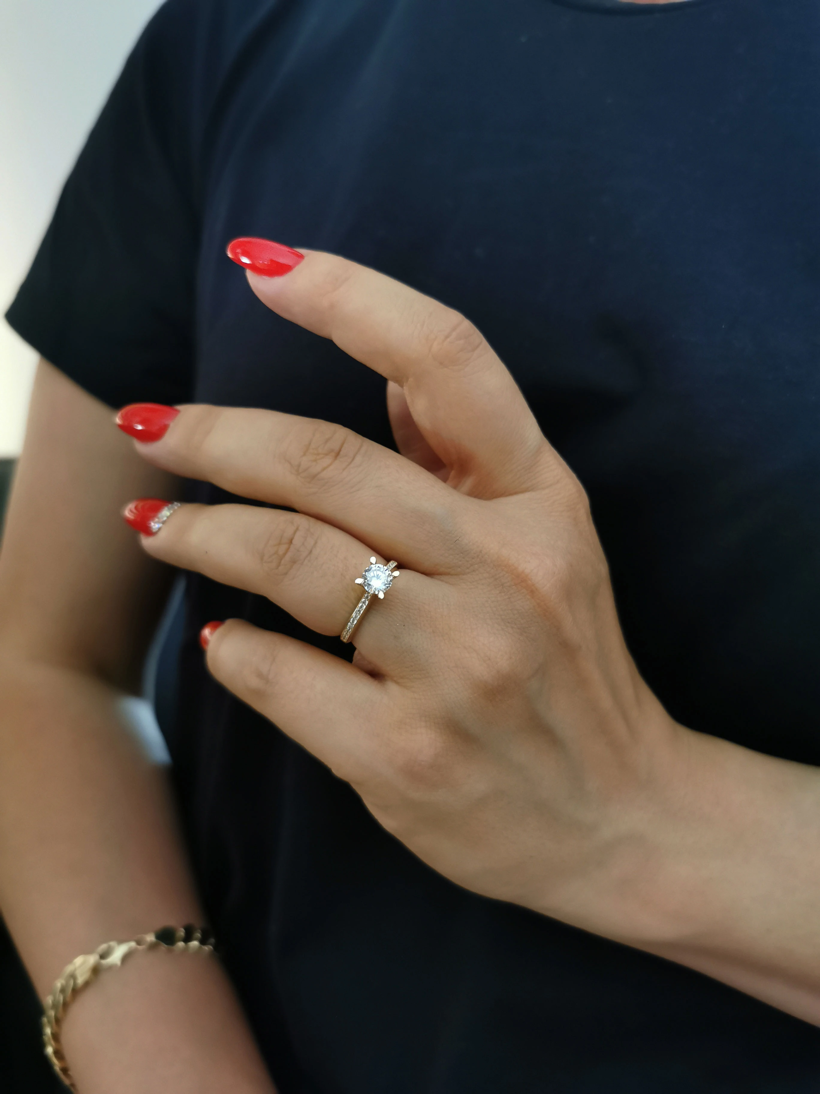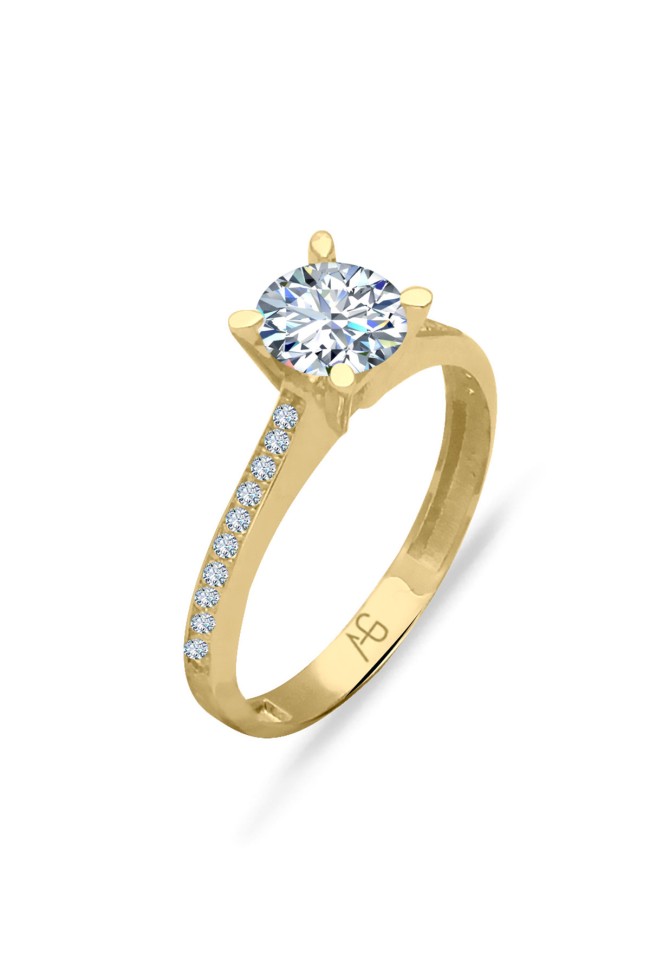 14 Ayar 1.85 gram ağırlığında sade ve modern bir tasarıma sahip evlilik teklifi için oldukça uygun taşlı kol model altın tektaş yüzük.