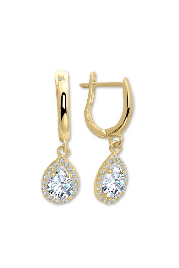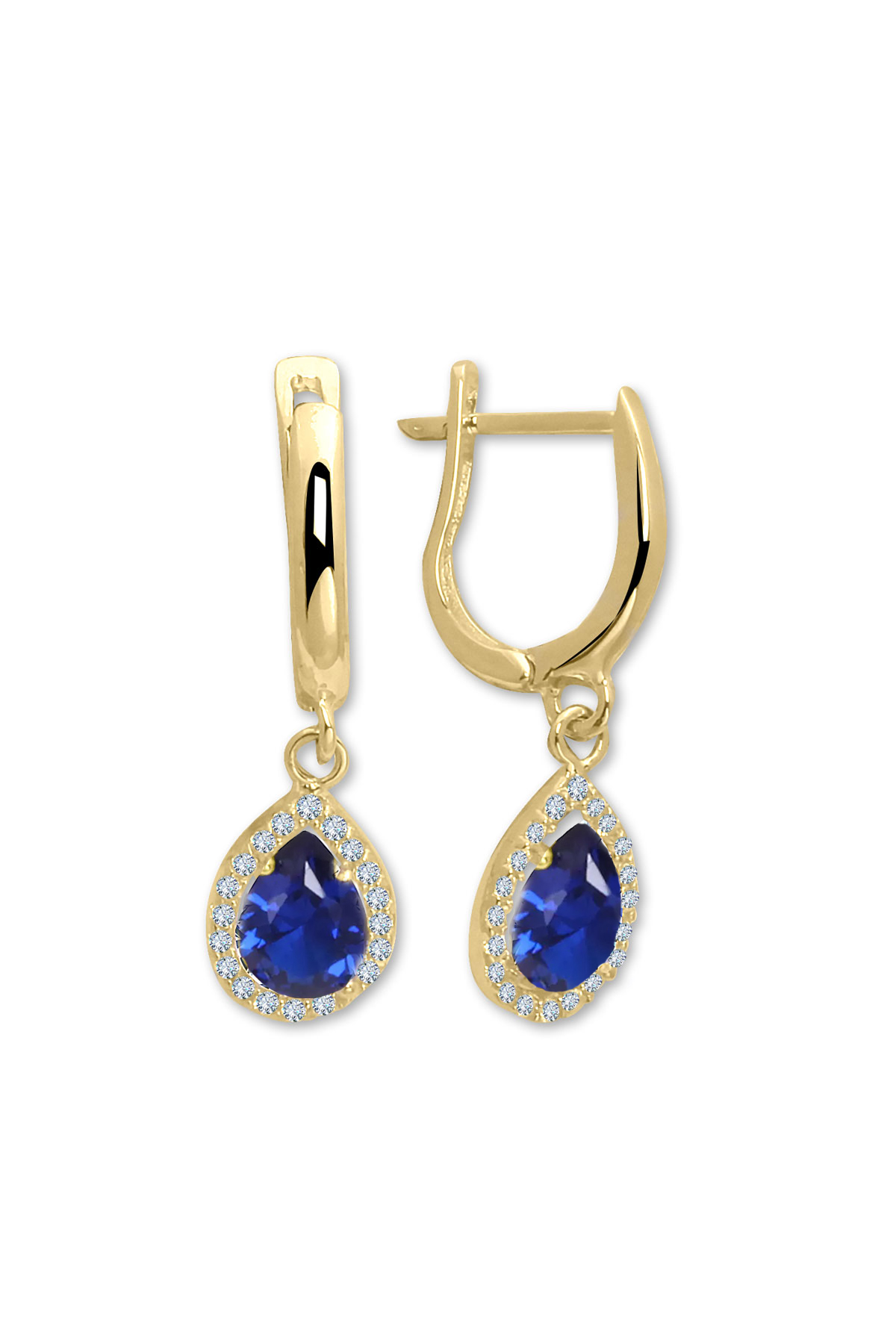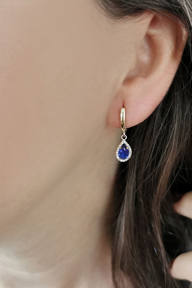 2.50 Gram Ağırlığında 2.5 Cm Damla Model Zirkon Safir Mavi Taşlı Günlük, Modern Ve Şık Bir Duruşa Sahip 14 Ayar Altın Tasarım Küpe.
