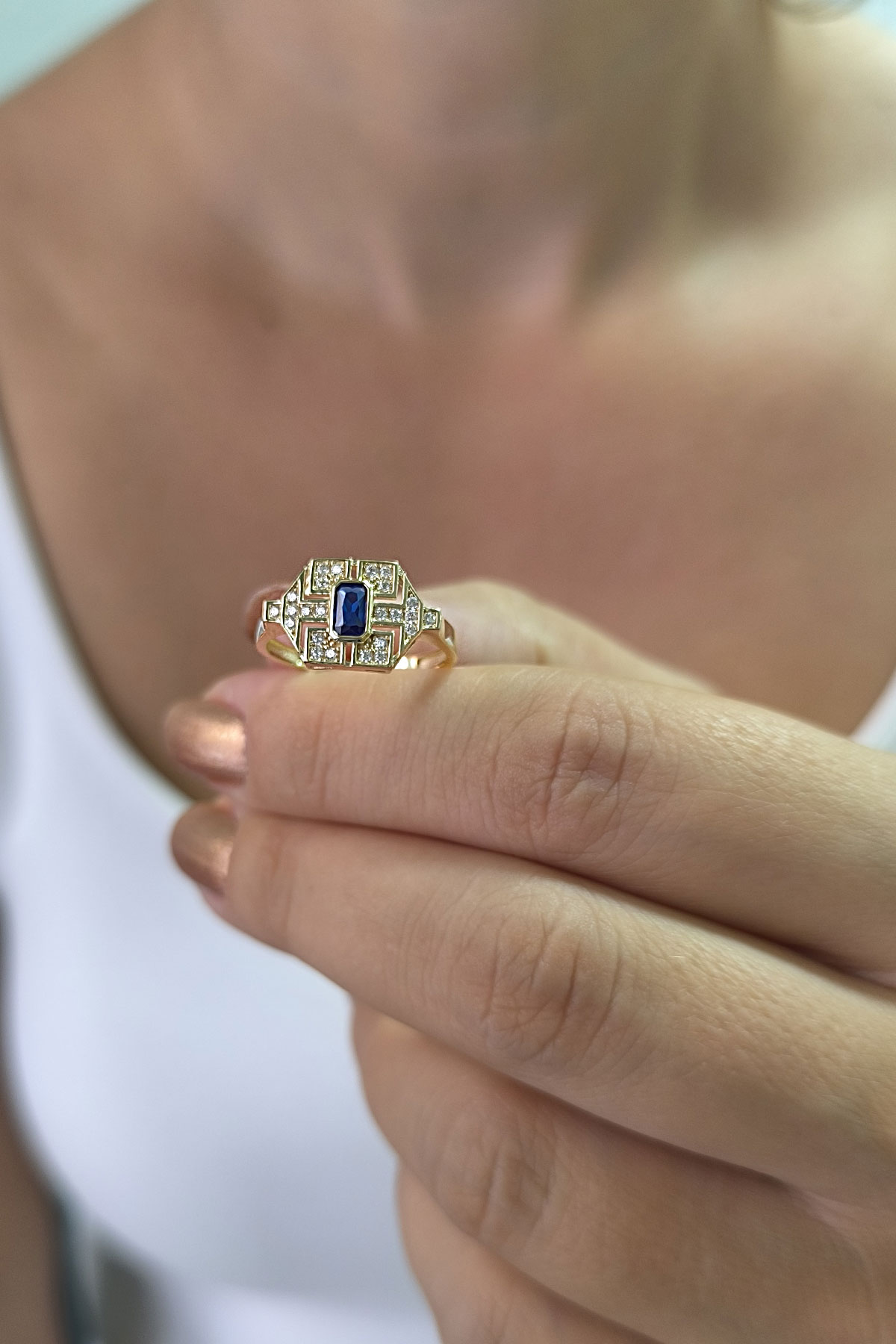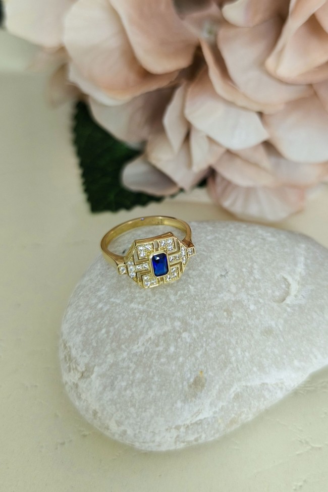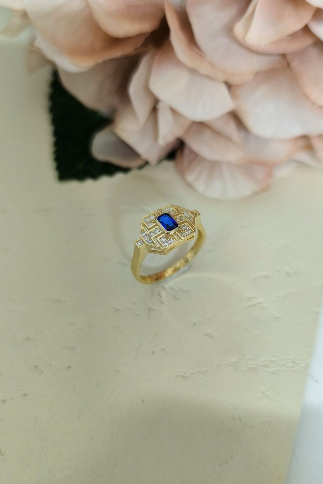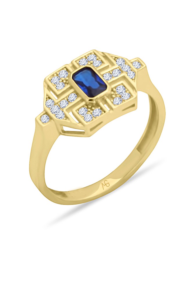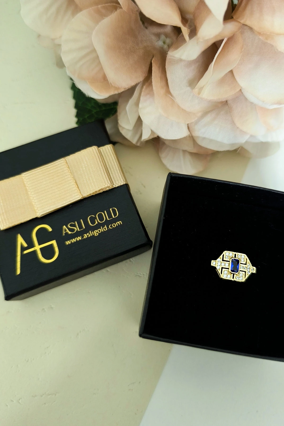 2.50 Gram Ağırlığında Otantik Bir Tarza Sahip Günlük Kullanıma Uygun Zirkon Safir Taşlı 14 Ayar Altın Tasarım Yüzük.