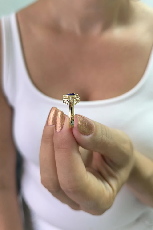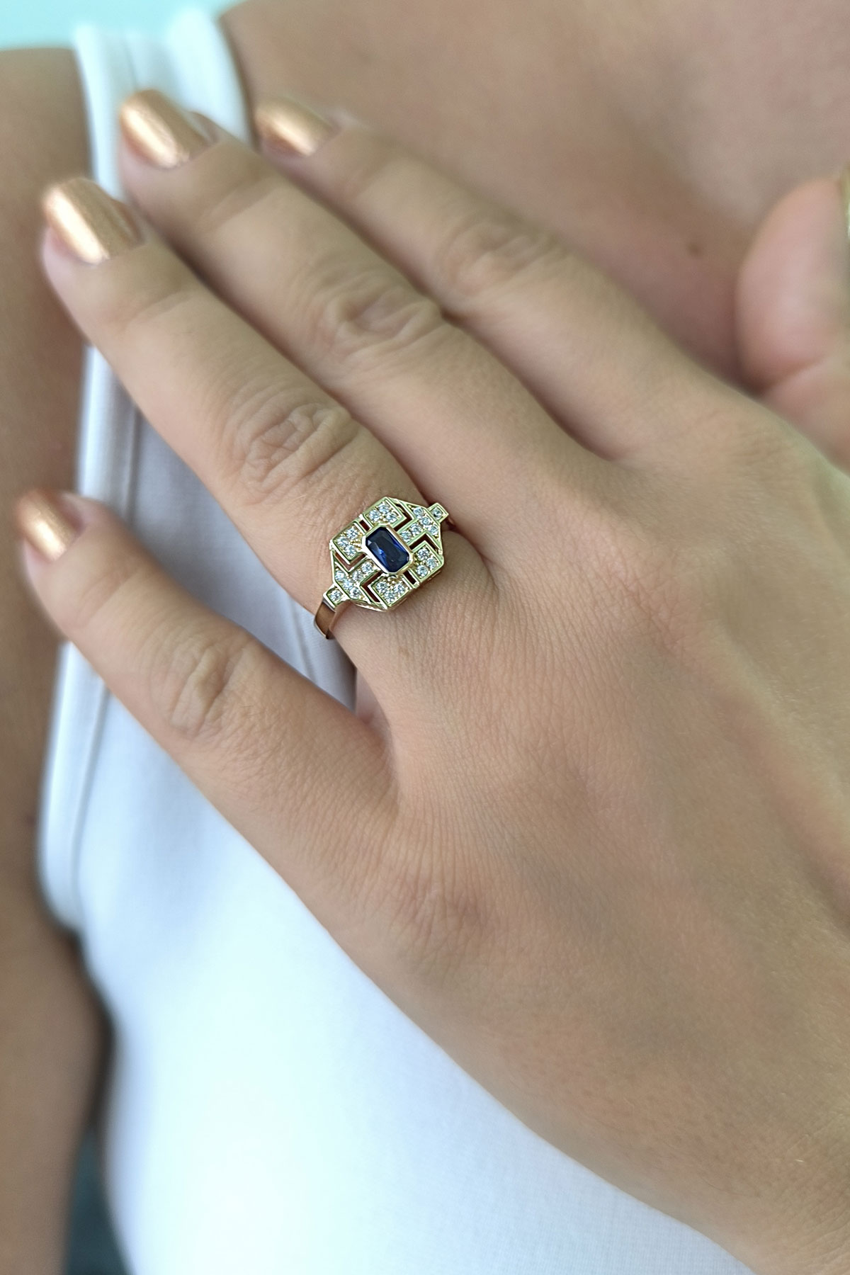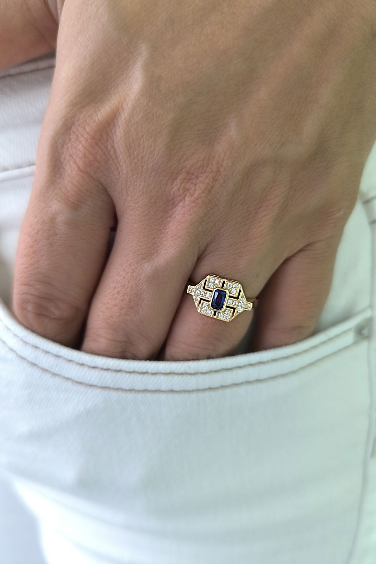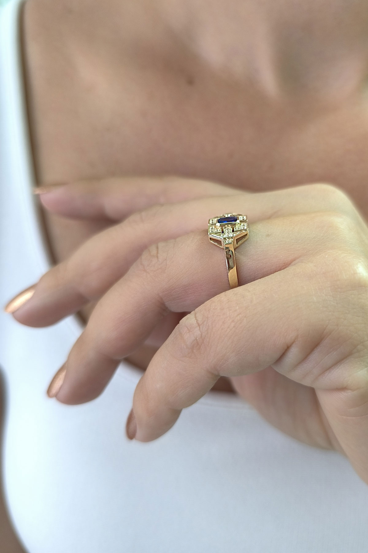 2.50 Gram Ağırlığında Otantik Bir Tarza Sahip Günlük Kullanıma Uygun Zirkon Safir Taşlı 14 Ayar Altın Tasarım Yüzük.