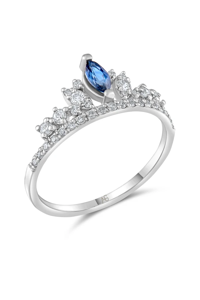 0.25 Ct. F/SI 0.20 Ct. safir taşlı 14 ayar beyaz altın pırlanta yüzük. Zarif duruşuyla parmaklarınızda ahenk yakalayacağınız anlara şahit olun.