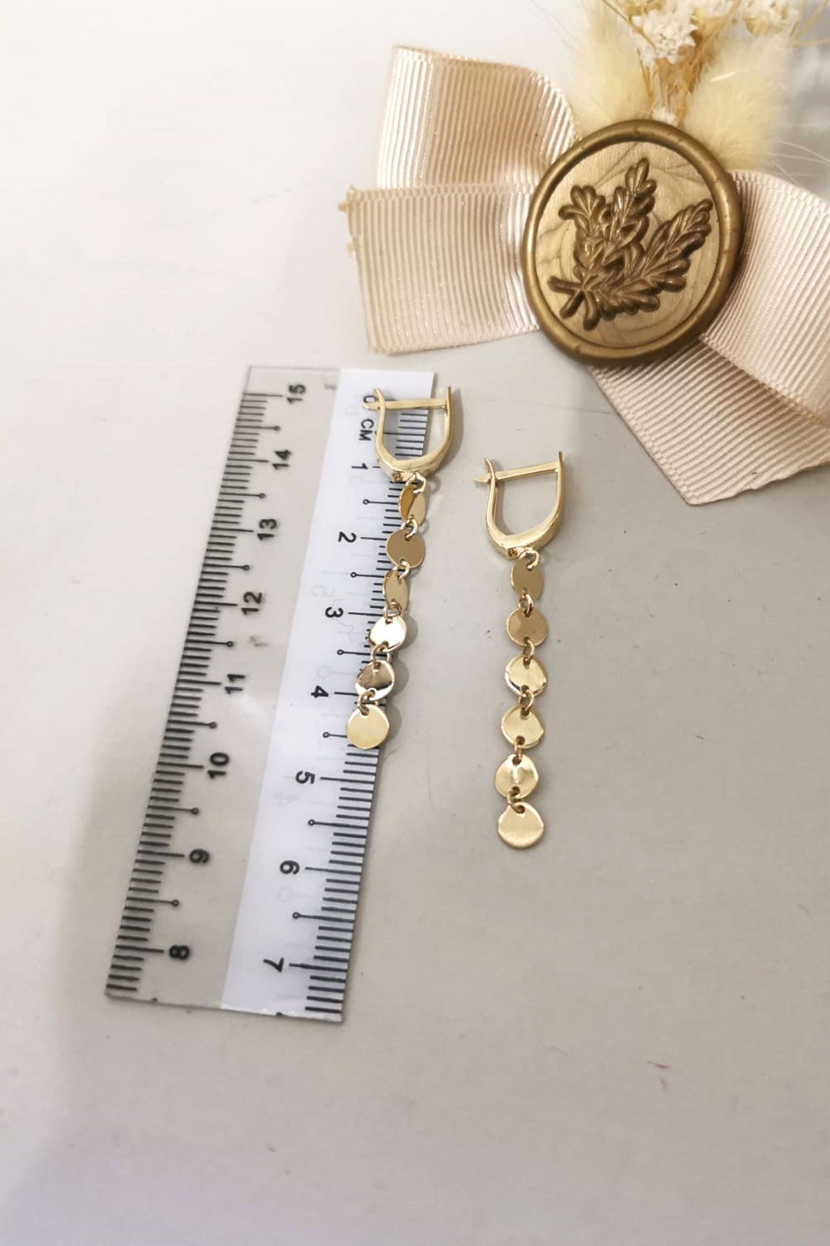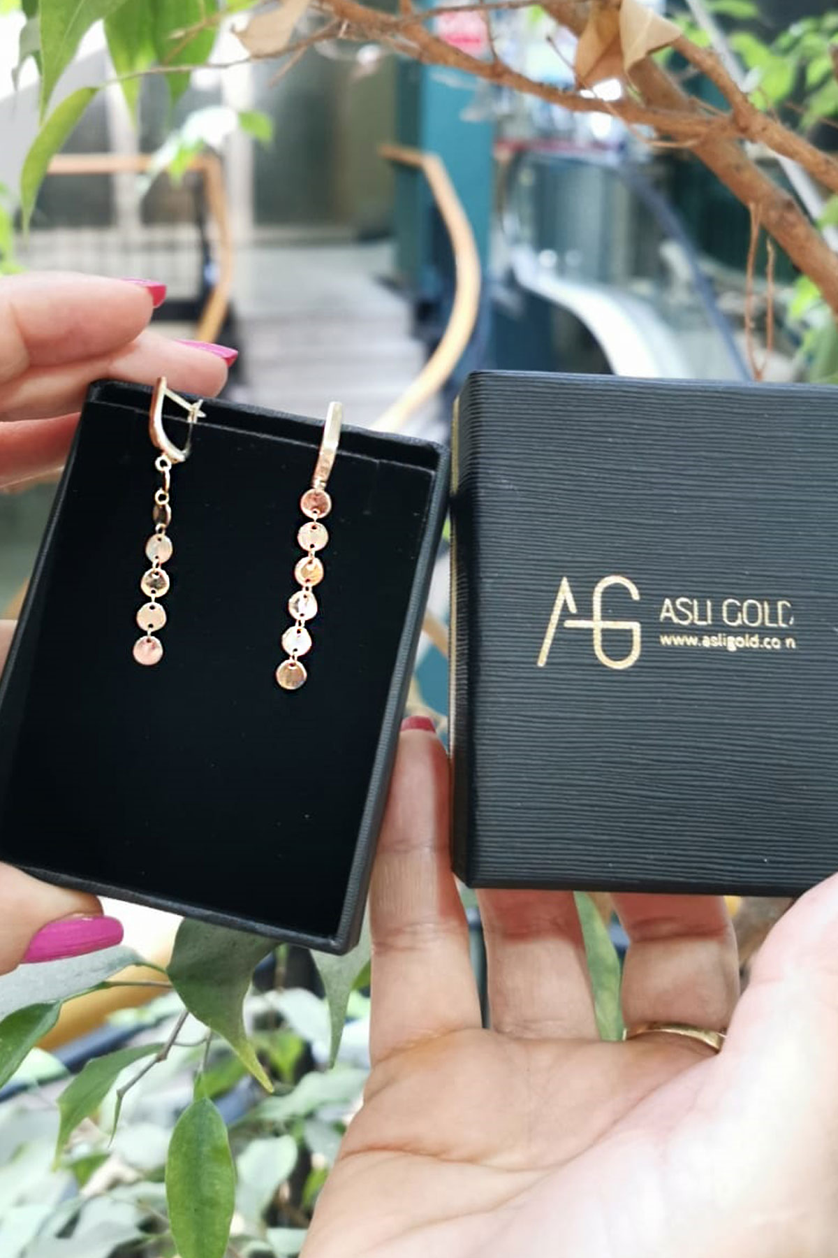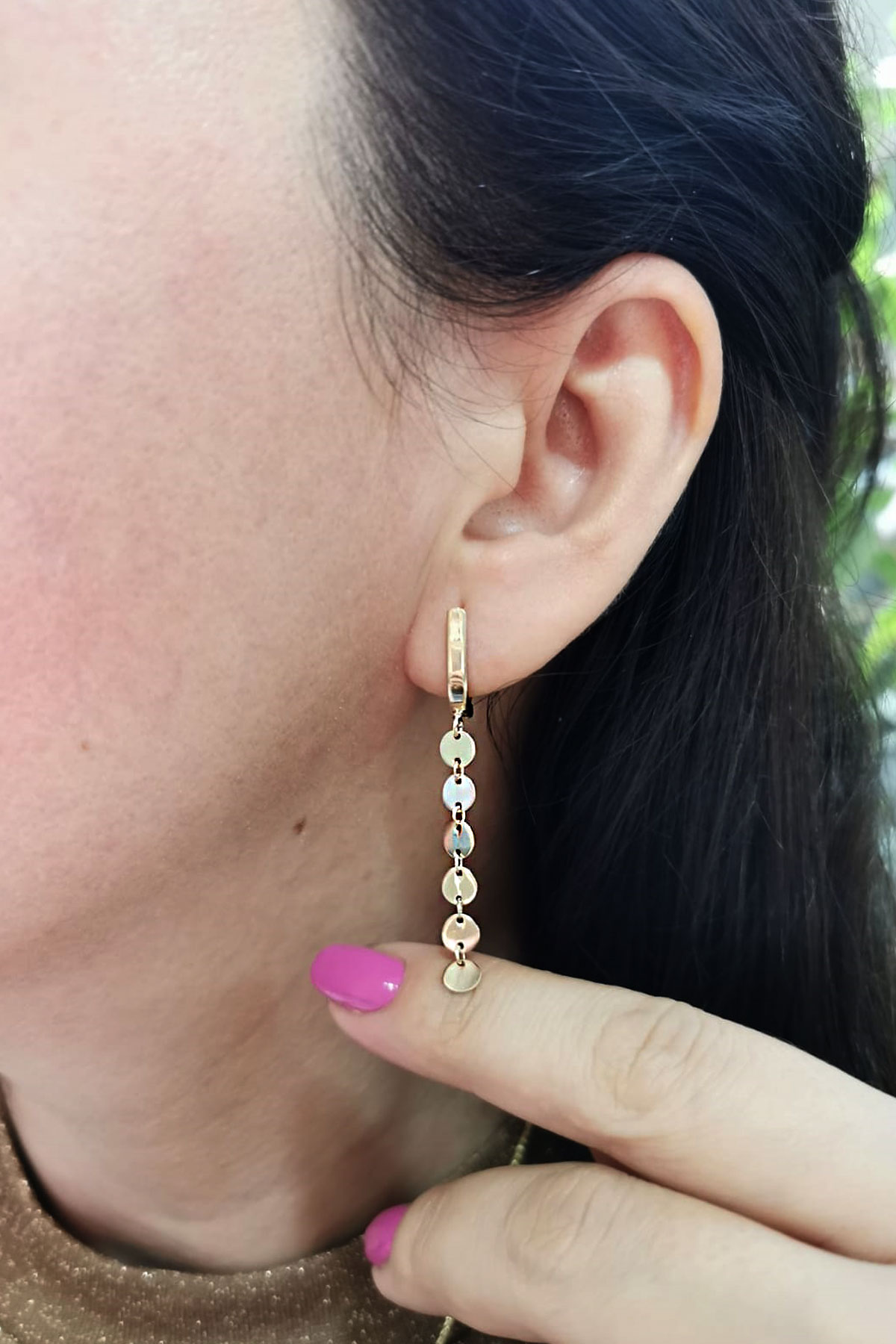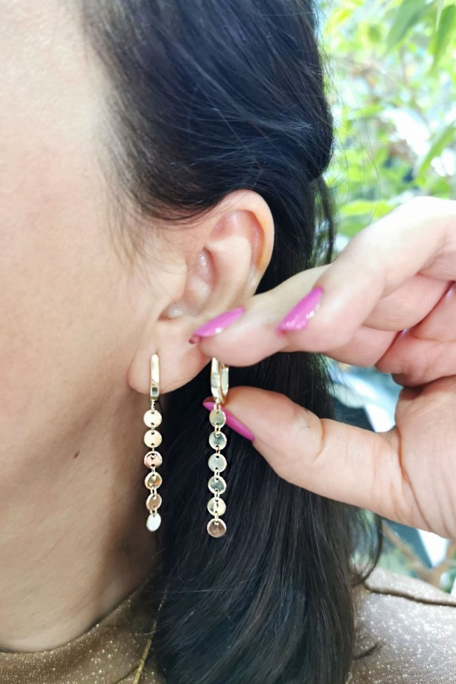2.30 Gram Ağırlığında 14 Ayar Günlük Kullanıma Uygun Şık Model 4.5 Cm Sallantılı Pullu Altın Küpe.