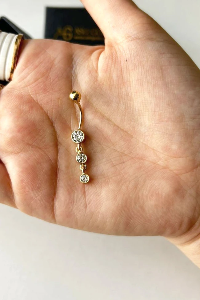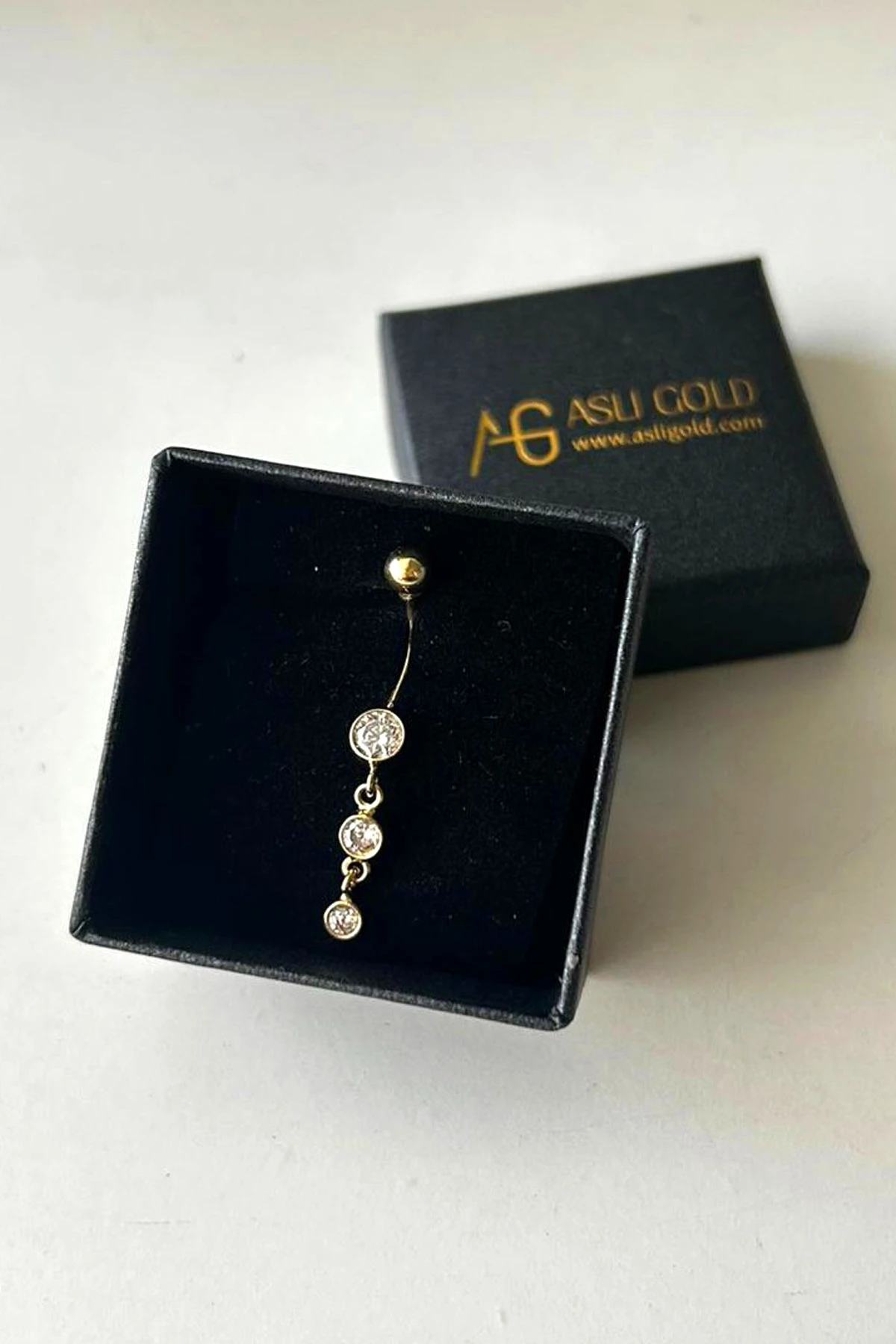 Tria Taşlı Sallantılı 14 Ayar Altın Göbek Piercingi.