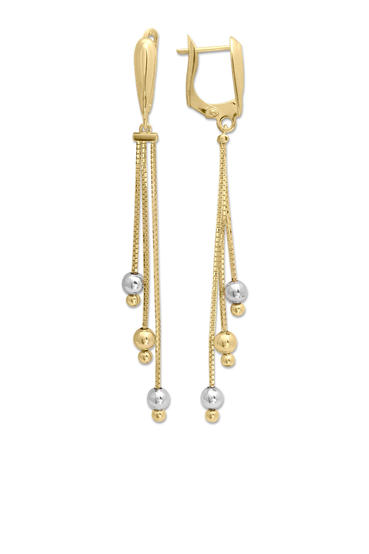 3.35 Gram Ağırlığında Işıl Işıl Toplu ve Zincirli Tasarım 14 Ayar Altın Modern ve Şık Bir Havaya Sahip Taşsız Sallantılı 7 Cm Boyunda Elenor Küpe.