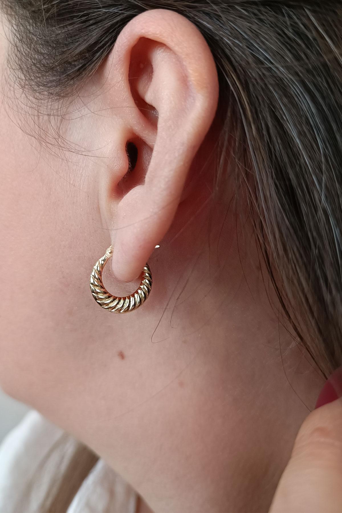 14 Ayar 1.5 cm süzme bombeli midye model günlük tasarımı ile hafif ve farklı küpeleriniz ile kombine olarak da kullanabileceğiniz modern 1.30 gram ağırlığında altın halka küpe.