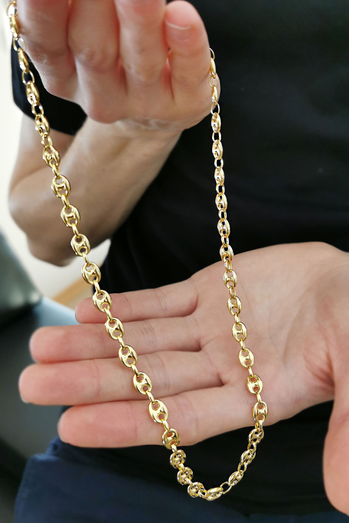 Spor Tasarım Her Sezon Trend 50 Cm Uzunluğunda 15.25 Gr. Ağırlığında 14 Ayar Altın Modern Unisex Kullanıma Uygun Gemici Model Zincir Kolye.