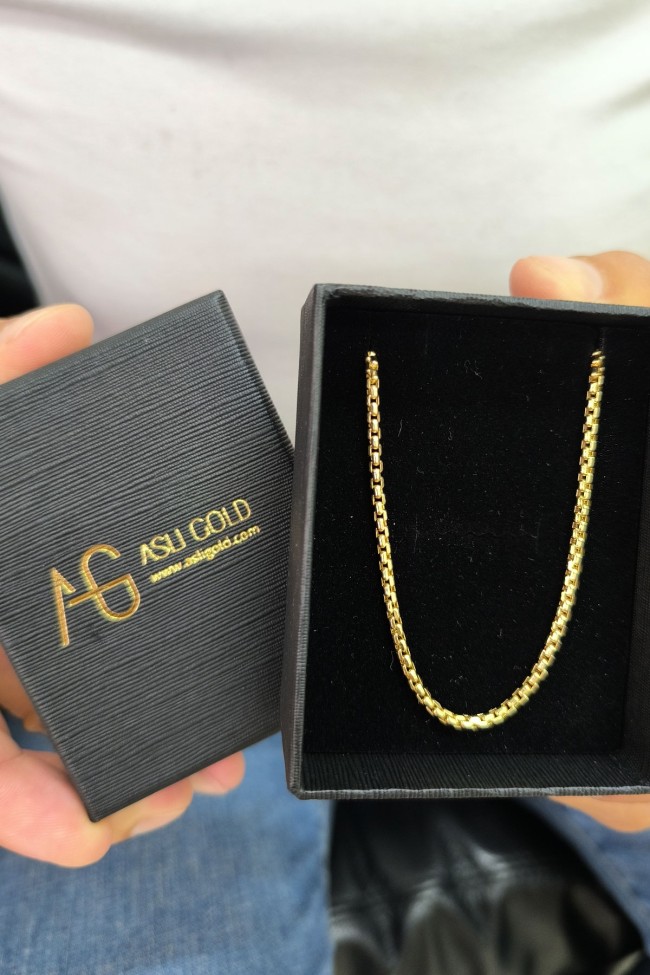 Spor Tasarımıyla Unisex Kullanıma Uygun 55 Cm Uzunluğunda 8.85 Gr. Ağırlığında 14 Ayar Altın Modern Günlük Kullanıma Uygun Dolgun Traşlı Küp Unisex Kullanıma Uygun Zincir Kolye.