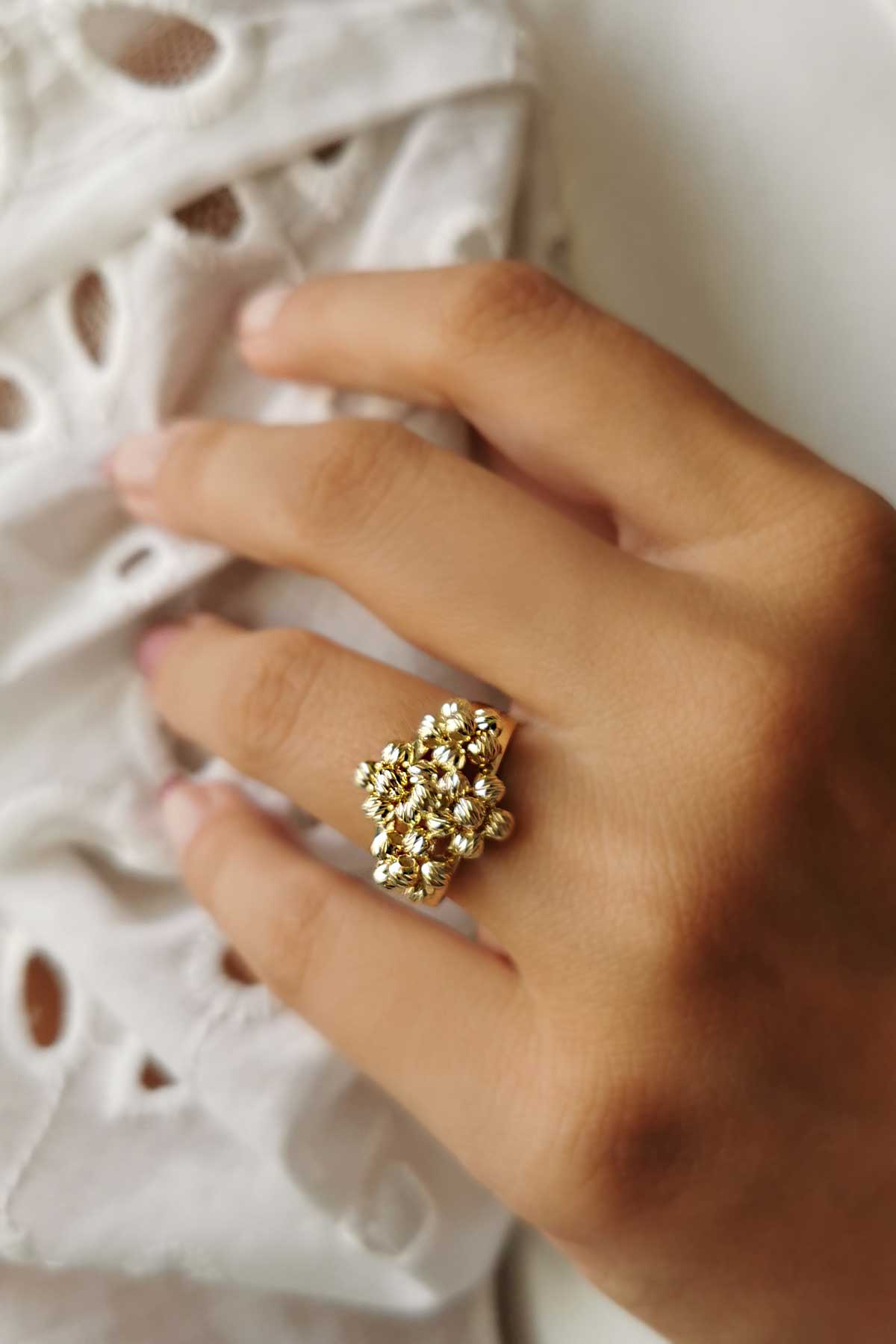 2.90 Gram Ağırlığında Taşsız Dorika Çiçek Tasarım Işıl Işıl Oldukça Hoş Bir Havaya Sahip, Gösterişli Ve Günlük Kullanıma Uygun 14 Ayar Altın Kadın Yüzük.