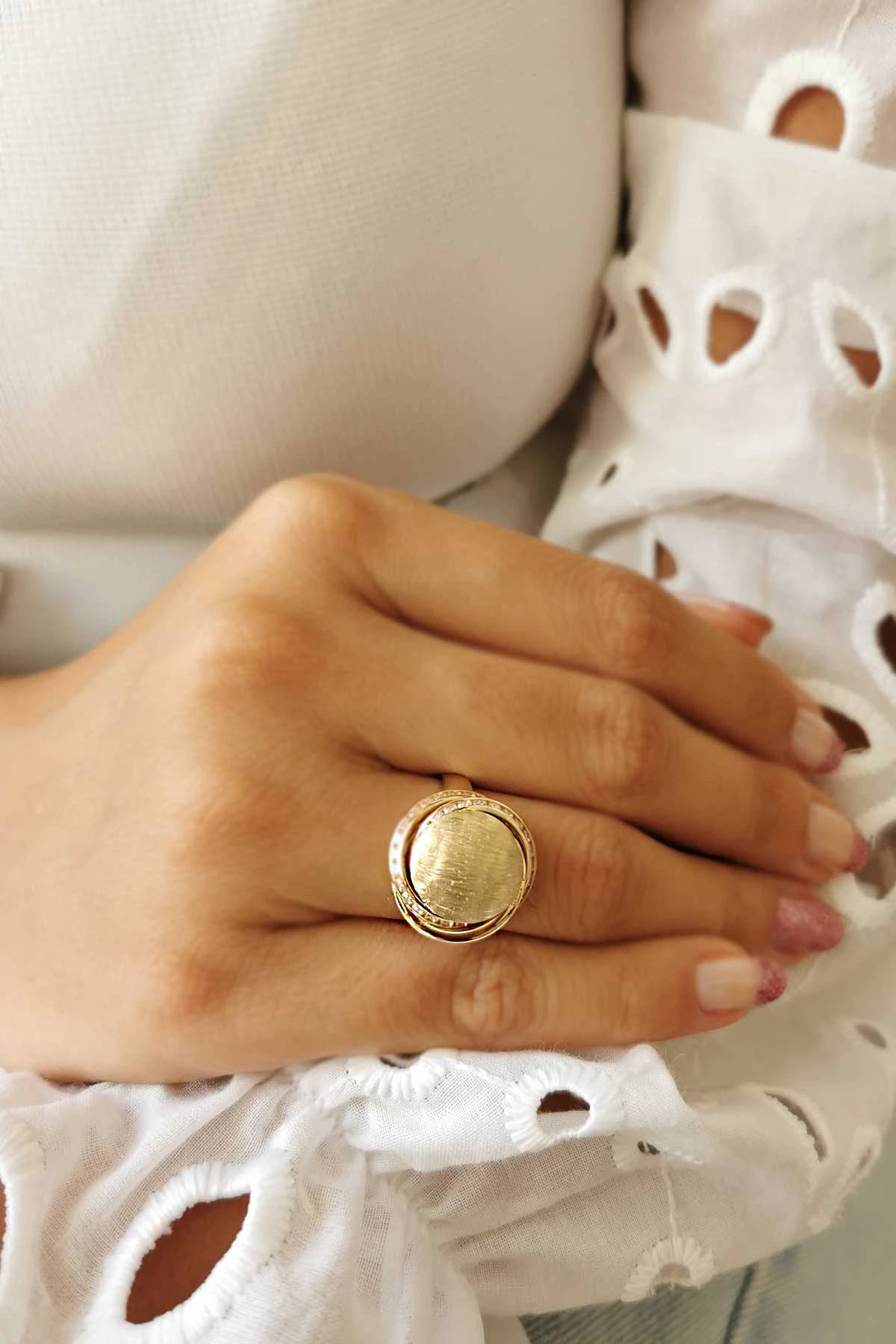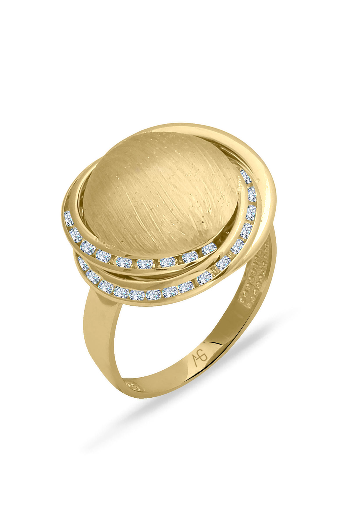 3.10 Gram Ağırlığında Kenar Taş Detaylı Tasarımına Eşlik Eden Simli Bombe Geçişleri İle Oldukça Hoş Bir Havaya Sahip, Gösterişli Ve Günlük Kullanıma Uygun 14 Ayar Altın Kadın Yüzük.