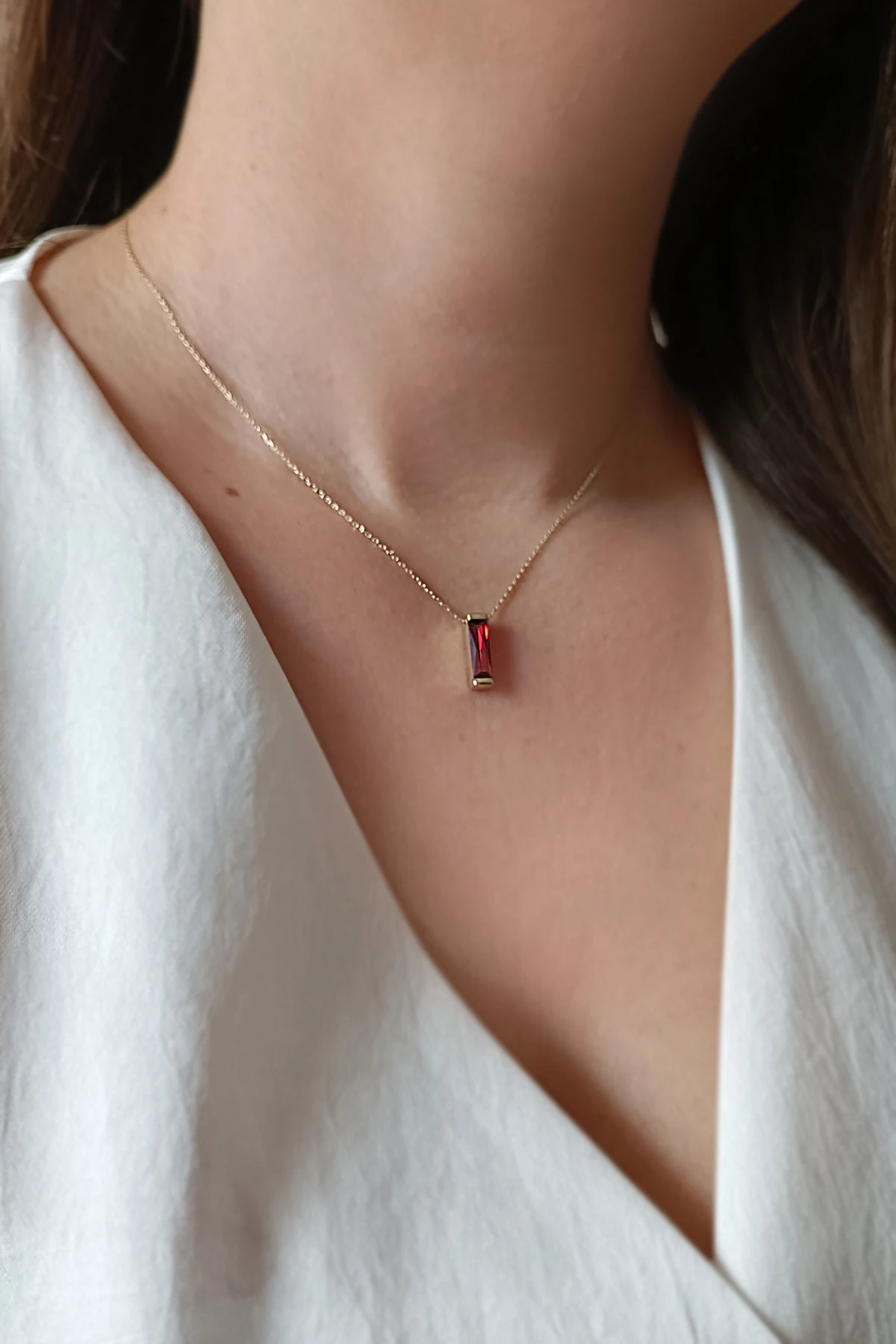14 Ayar garnet taşlı ışıl ışıl spor ve şık duruşa sahip günlük kullanıma uygun 2.05 gram ağırlığında 45 Cm boyunda altın yeni sezon çubuk kolye.