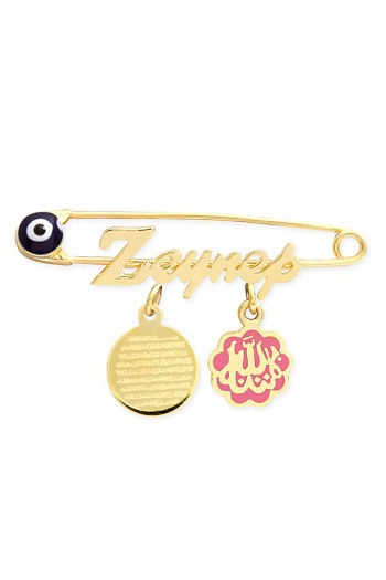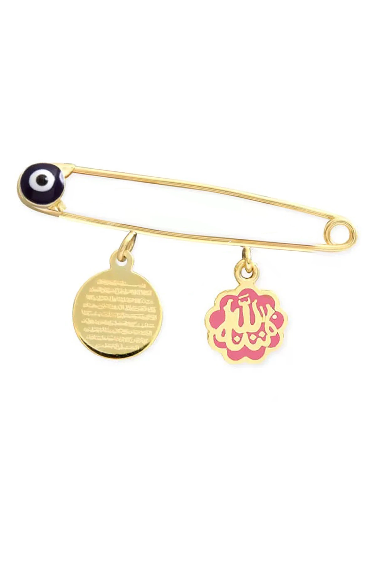 14 ayar 1.50 gr ağırlığında ayetel kürsi dualı bebek altın omuz iğnesi.