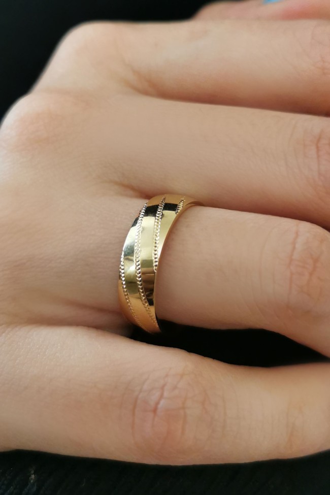 14 Ayar 2.90 gram ağırlığında yol işleme desenli şık ve günlük kullanımda sizi oldukça rahat ettirecek unisex kullanıma uygun, modern bir tasarıma sahip evlilik, nişan alyansı olarak da tercih edebileceğiniz altın taşsız alyans.