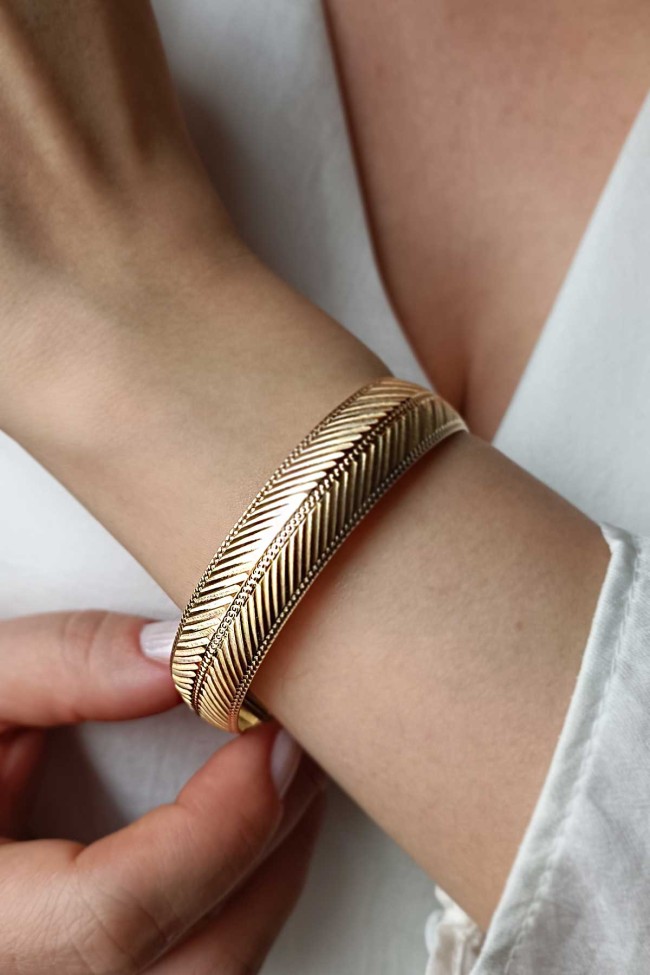 12.00 Gram Ağırlığında Taşsız Modern Kalem İşleme Desen Detaylı Günlük Kullanıma Uygun Hediyelik Olarakta Tercih Edebileceğiniz Model 14 Ayar Altın Kadın Bilezik.