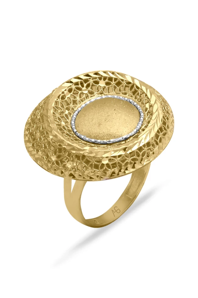 6.00 Gram Ağırlığında Petekli İşlemeyle Tasarlanmış Modern Tasarımlı Çok Şık Modele Sahip Gösterşli 14 Ayar Altın İtalyan Yüzük.