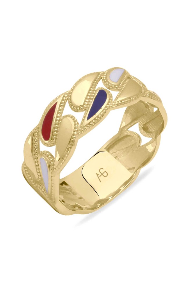 14 Ayar modern, spor duruşa sahip renkli mine detaylı taşsız model, sevdiklerinize yada kendinize armağan olarak tercih edebileceğiniz modern tasarım günlük kullanıma uygun 3.25 gram ağırlığında farklı model yüzüklerinizle bir arada da kullanabileceğiniz altın kombin yüzük.