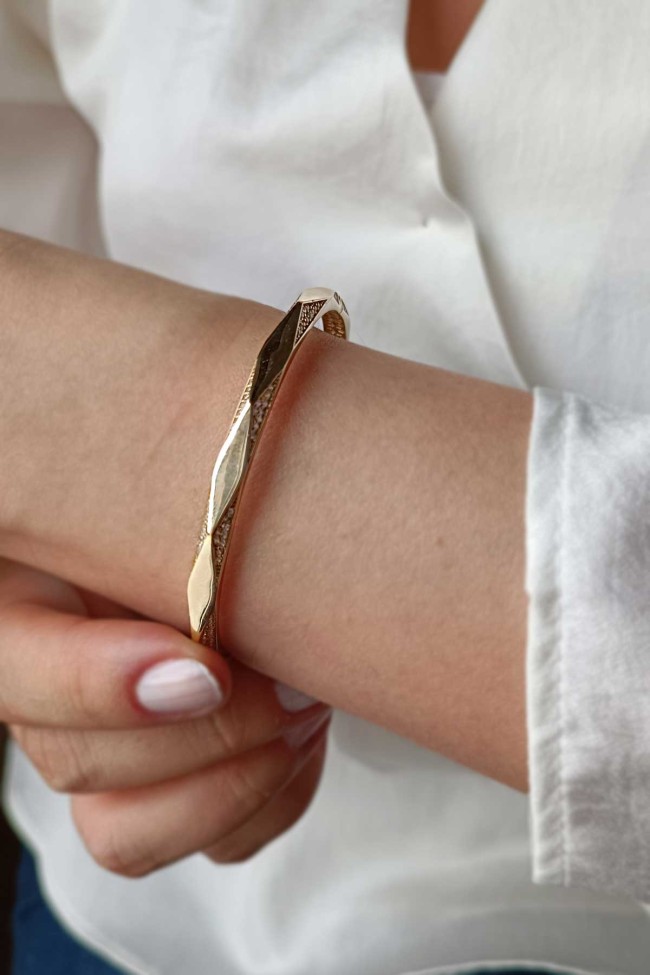 13.85 Gram Ağırlığında Taşlı Fasetli Model Günlük Kullanıma Uygun Hediyelik Olarakta Tercih Edebileceğiniz Model 14 Ayar Altın Kadın Bilezik.