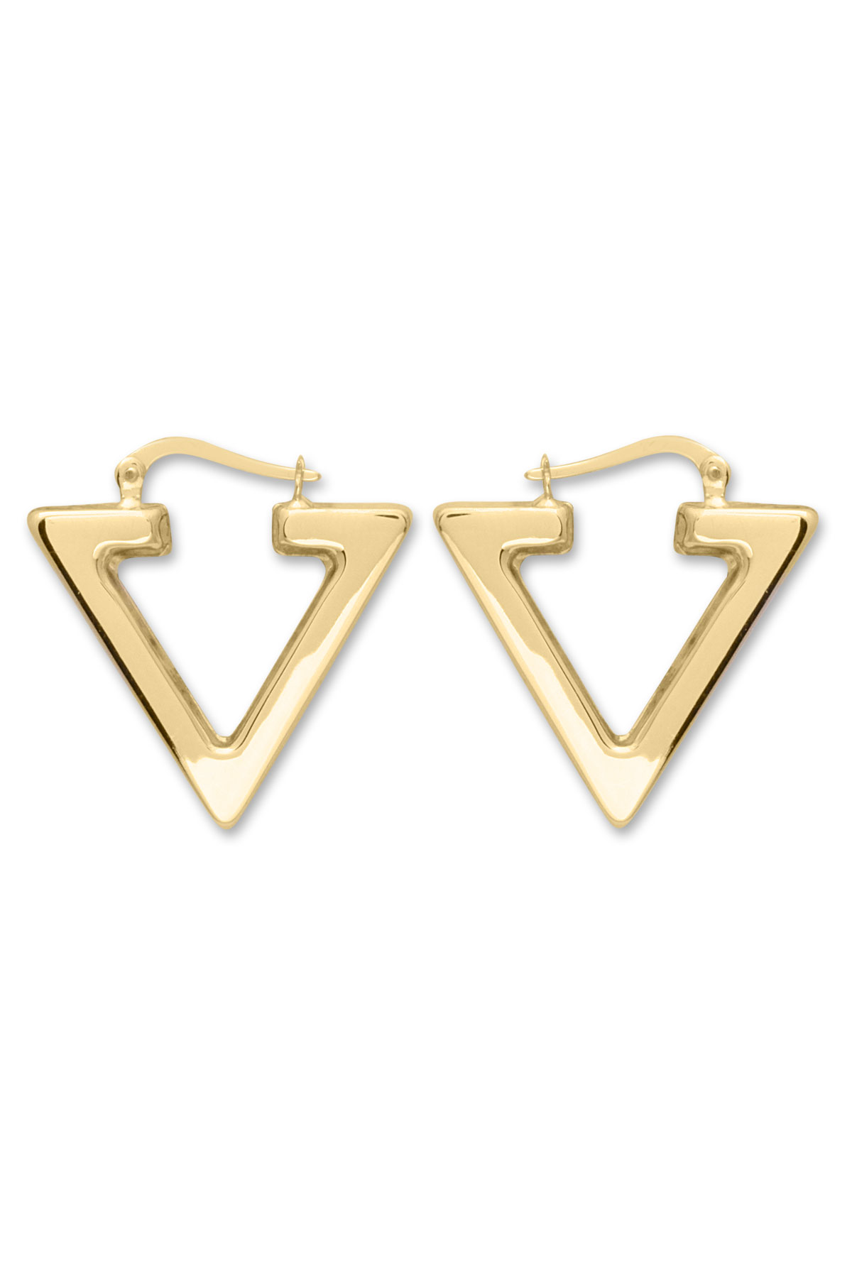14 Ayar şık ve modern, spor tasarımı ile zarif duruşa sahip üçgen model günlük kullanıma uygun 2.30 gram ağırlığında 2.5 Cm boyunda altın halka küpe.